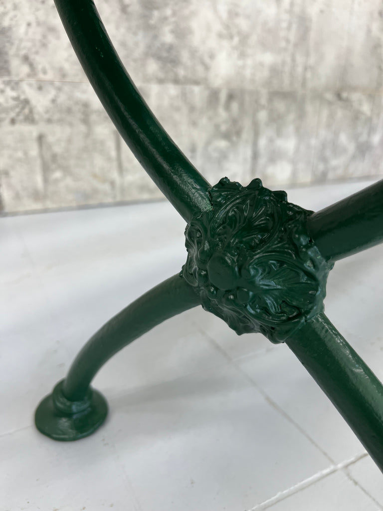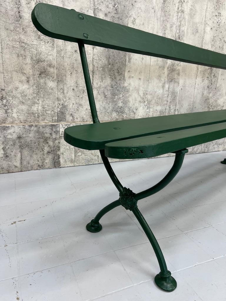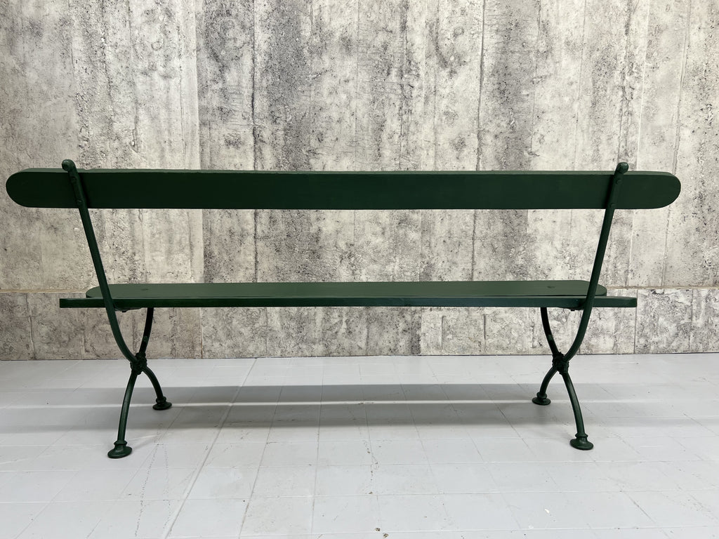 A beautiful metal and wooden vintage bench from France which has been finished in this fabulous forest green paint. A wonderful addition to a garden, an alfresco dining area or a terrace. In great condition, ideal to marry with a vintage table or a new one, or sitting in your garden positioned to enjoy your favorite view. Ready to use as it is. A wonderful find ready for a modern home.