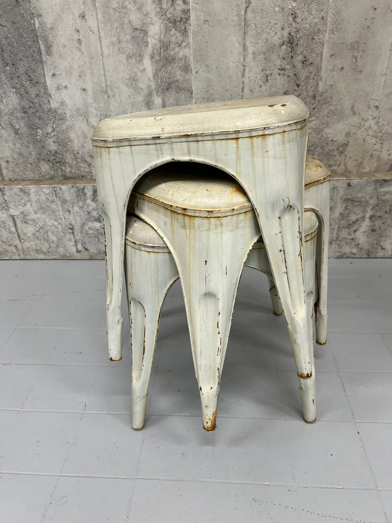 Set of Three Stacking 1930's Style Tolix Cream Coloured Metal Stools