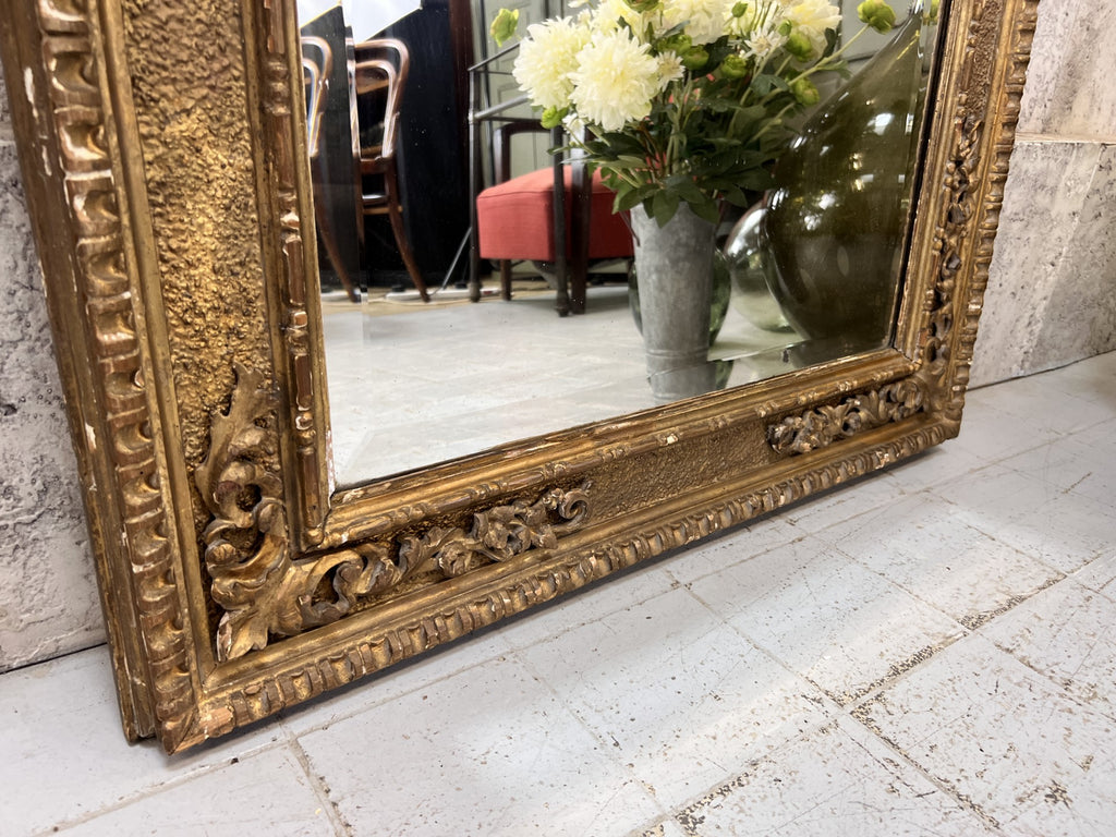 Please note: Many of the frames of our mirrors have suffered, to varying degrees, damage over time as they are incredibly fragile. We hold them in the condition we find them as a number of our clients prefer this. If however you would like more information about the specific areas that need attention, I can send you more pictures and we have a wonderful restorer who can renovate as required, which we would be delighted to organise on your behalf. Please contact me directly for more information. Sophie@vintagefrench.com