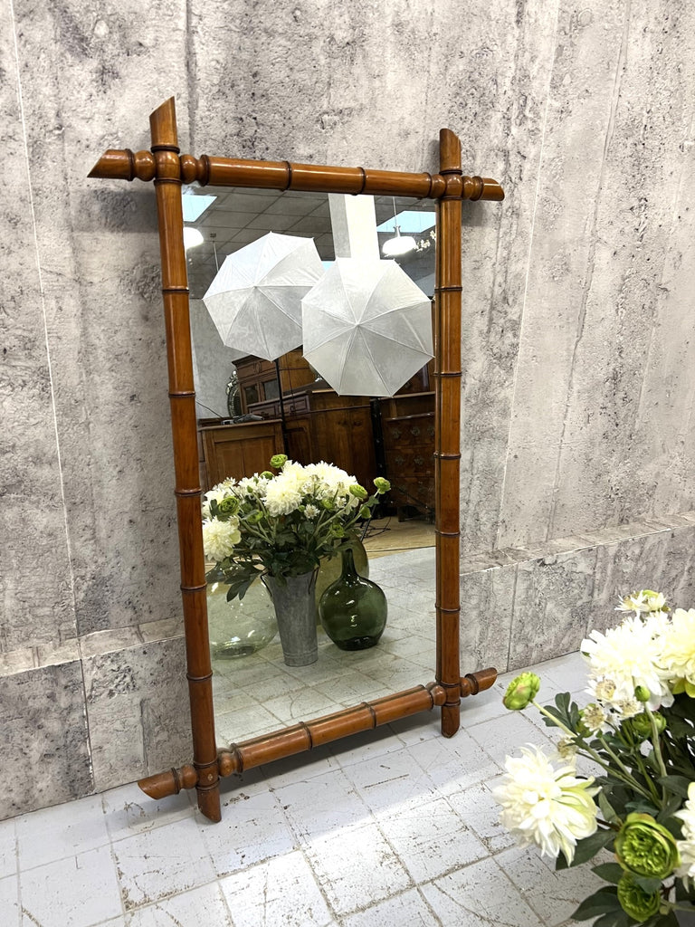 A large mid century mirror with this fabulous bamboo frame. This would be ideal in a bedroom, bathroom, hallway, kitchen or utility room, or even just propped up on a shelf as decoration. Slightly foxed glass, but not to stop the mirror being fully usable. Ready to use as it is.