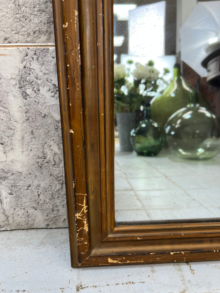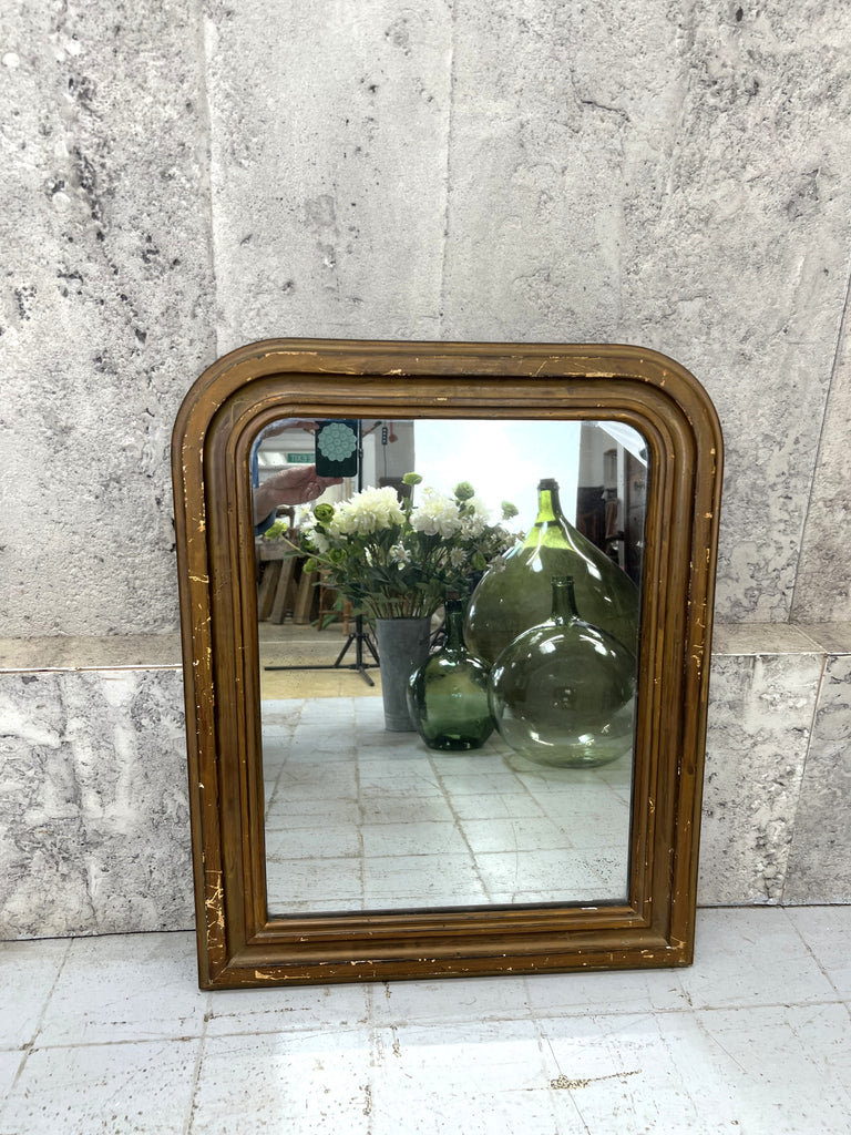 My hands down favorite place for these small Louis Philippe mirrors is in a modern bathroom.. also perfect for a hallway, dressing table, a very versatile mirror.. This example has had the gilded frame painted over which has in touch been scratched a lot... but to us this example would be ideal to choose if you wanted to customise your frame to suit your look and scheme. The overall look of the mirror is wonderful. The mirror itself is original with foxing as you would expect.