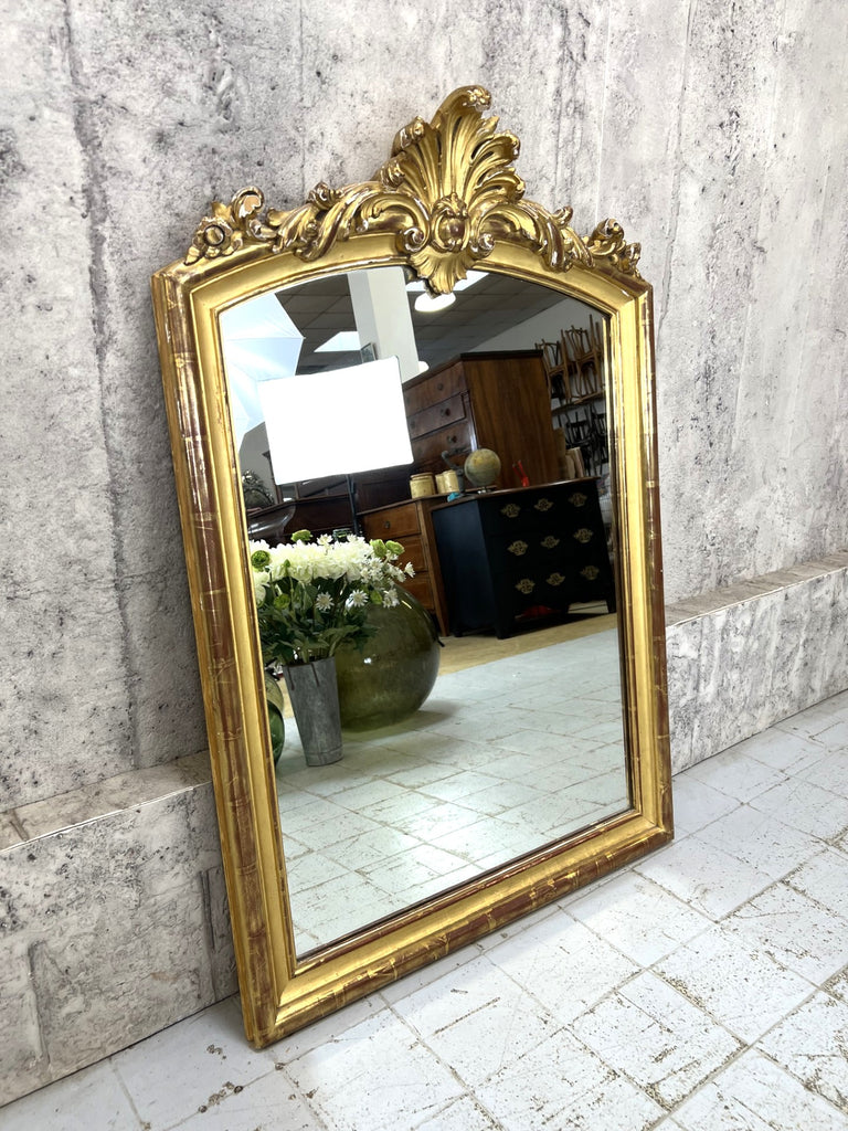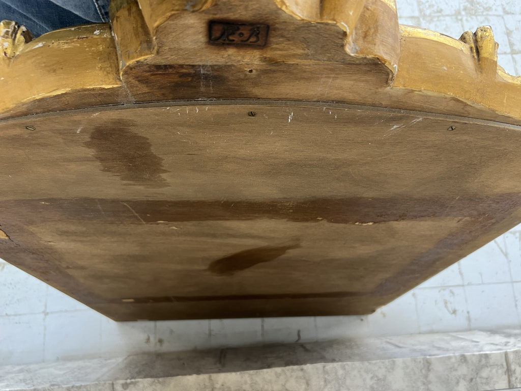 This is of no great age, probably mid century, this is a wooden carved frame that has been gilded. It has been chipped and bashed, this is not for one who is looking for perfection, more the person who is looking for a shabby chic look. The glass is in good condition and the frame is solid and strong.