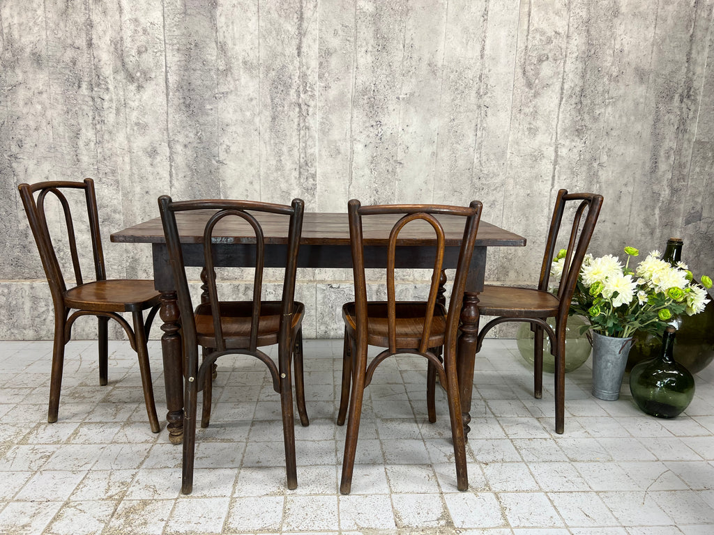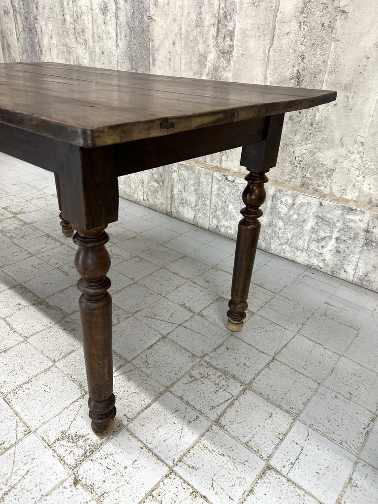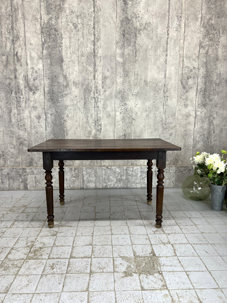 A classic and traditional French Bistro table with beautiful wooden turned legs and the table top has the most beautiful patina. In excellent ready to use condition for a bistro, bar or restaurant.. or even for a work space as a desk. Can seat 4 comfortably or 6 at a squeeze if required.