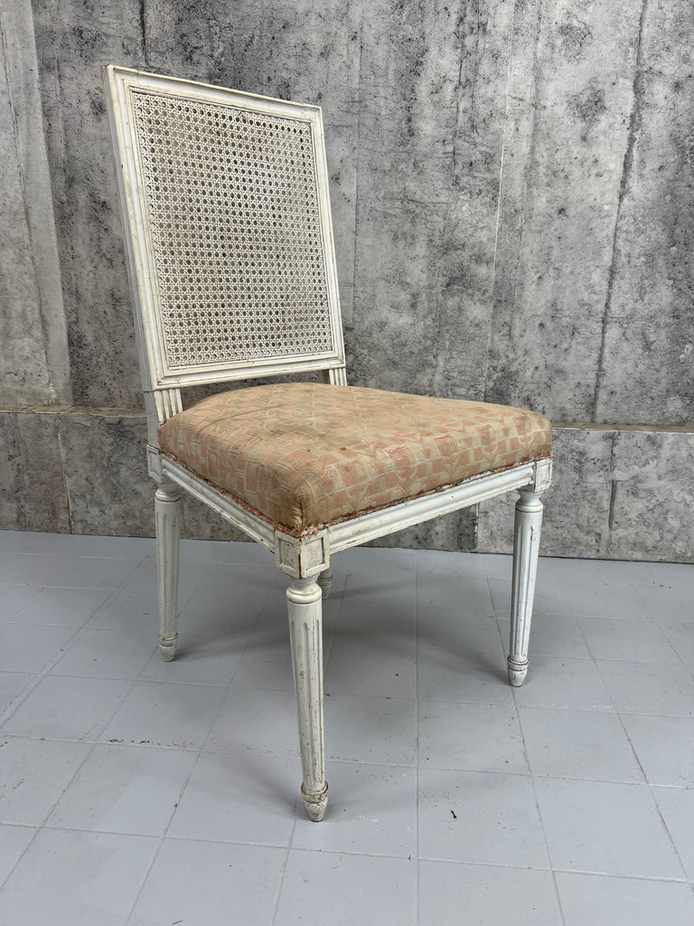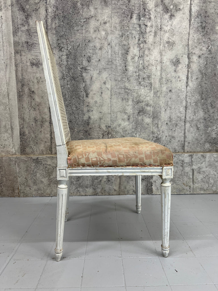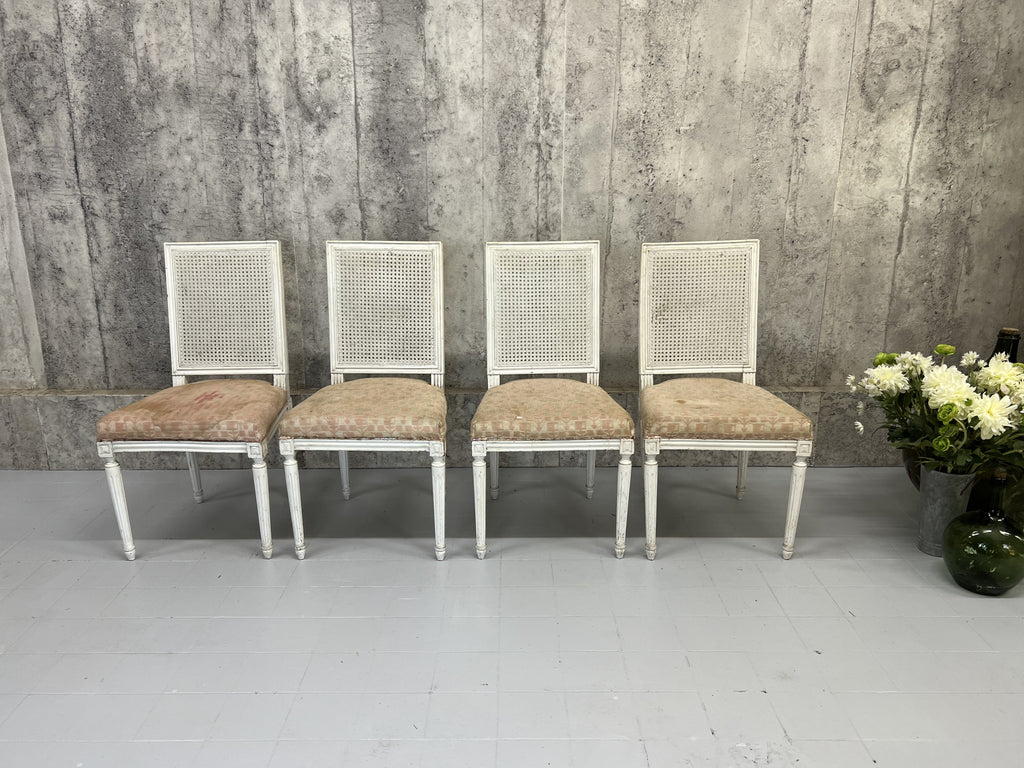 Set of Four White Shabby Chic Cane Dining Chairs to Reupholster