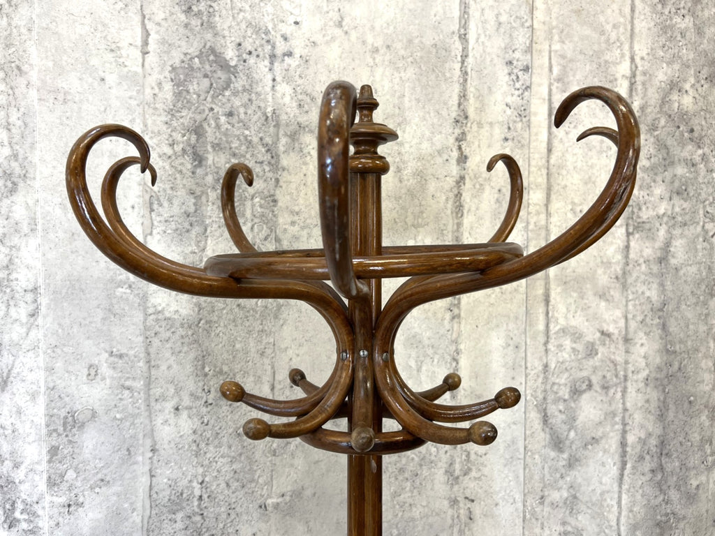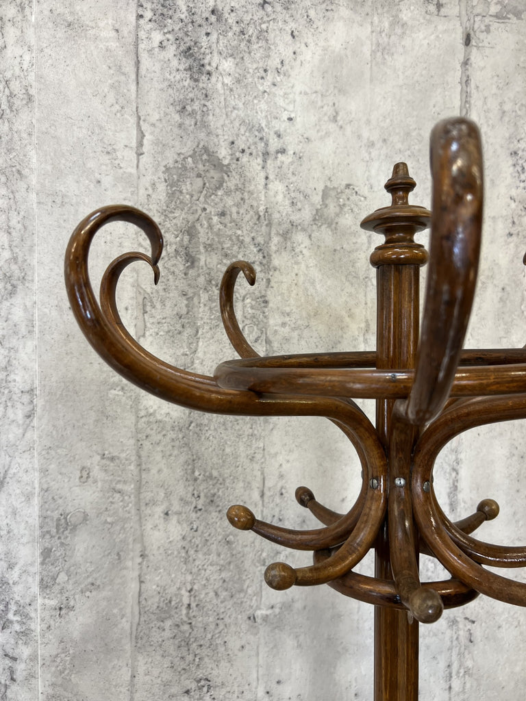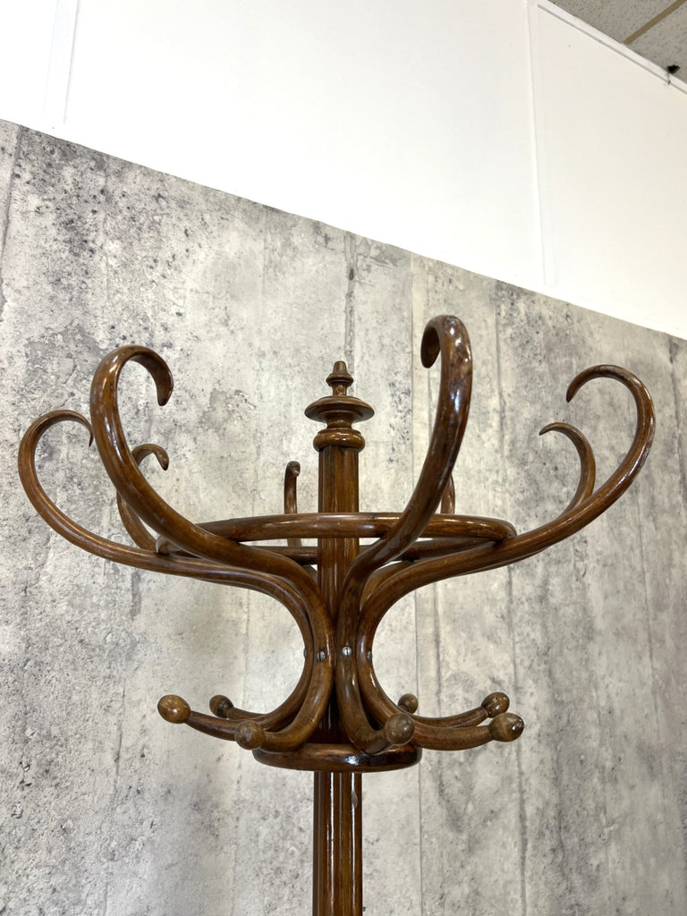 A fabulous and original example of the classic coat stand.  With hooks at the top another and space for umbrellas in the base, this piece is not only immensely practical and functional for storing coats but it is also beautiful and a statement in itself.  In good overall condition, varnish and wood with bumps and bruises commensurate with age and use.  A fabulous piece ready to use.