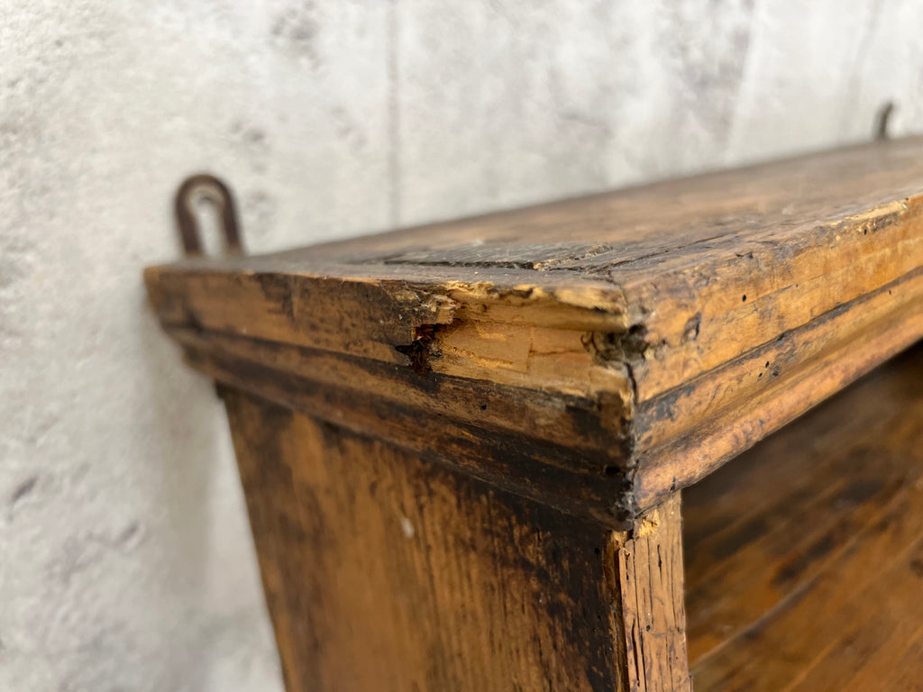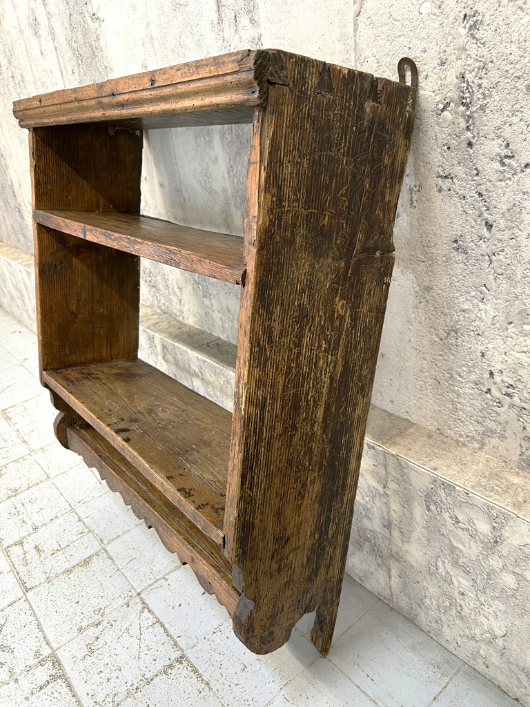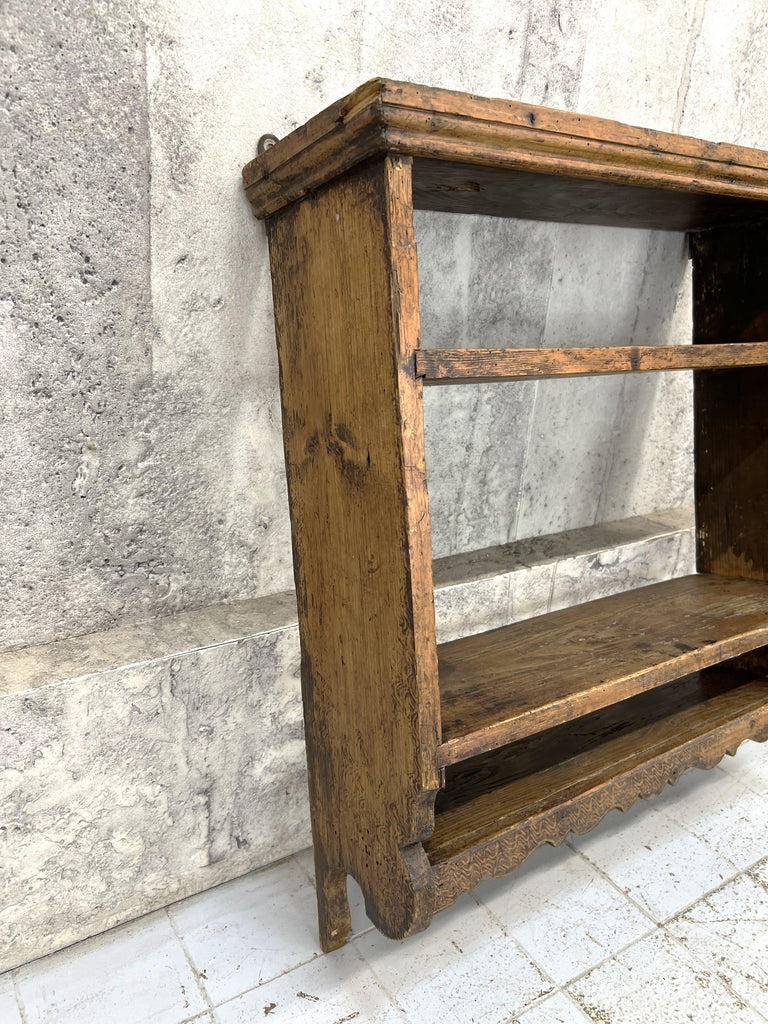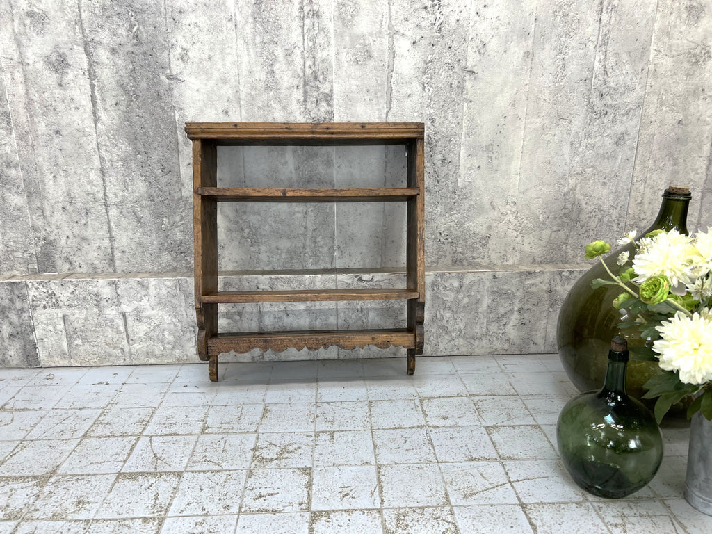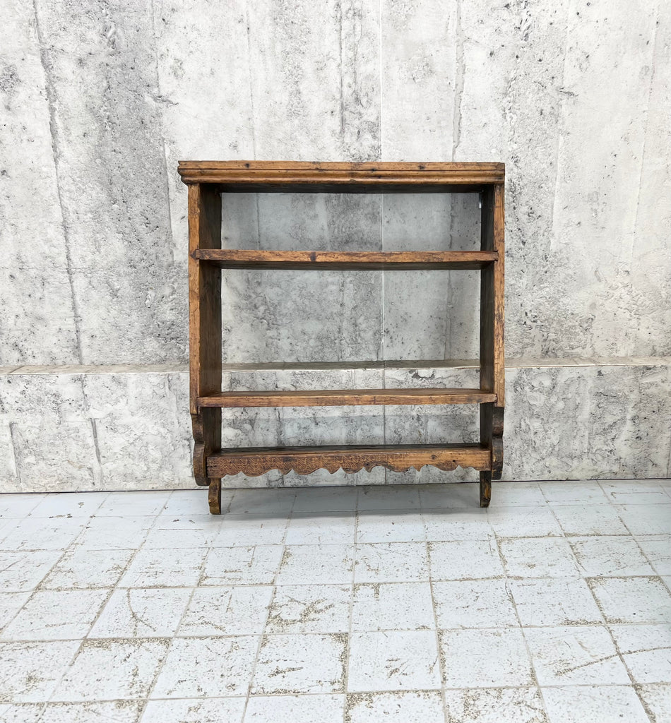 A very rustic, well used and loved set of immensely practical and characterful wooden shelves perfect for use in a kitchen, pantry, hallway, child's bedroom, bathroom etc. There is sign of ancient wood worn and wood rot, but all are treated and this fabulous set is ready to use as they are.