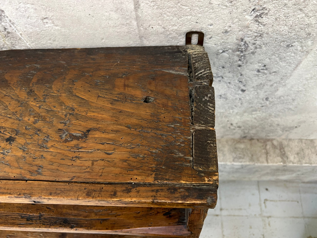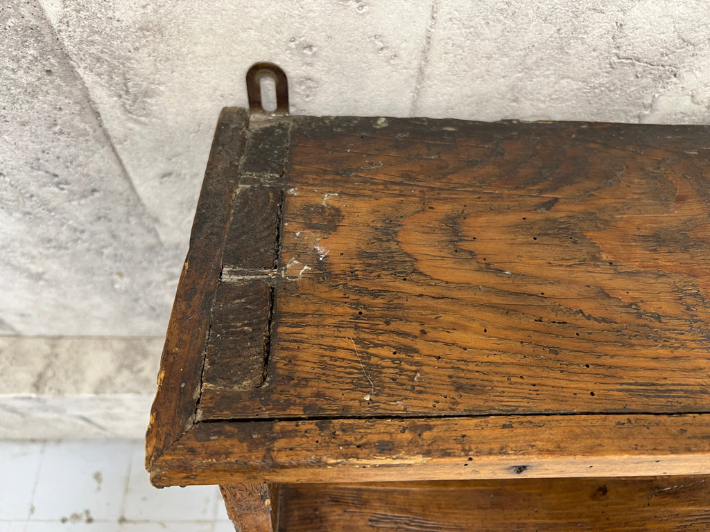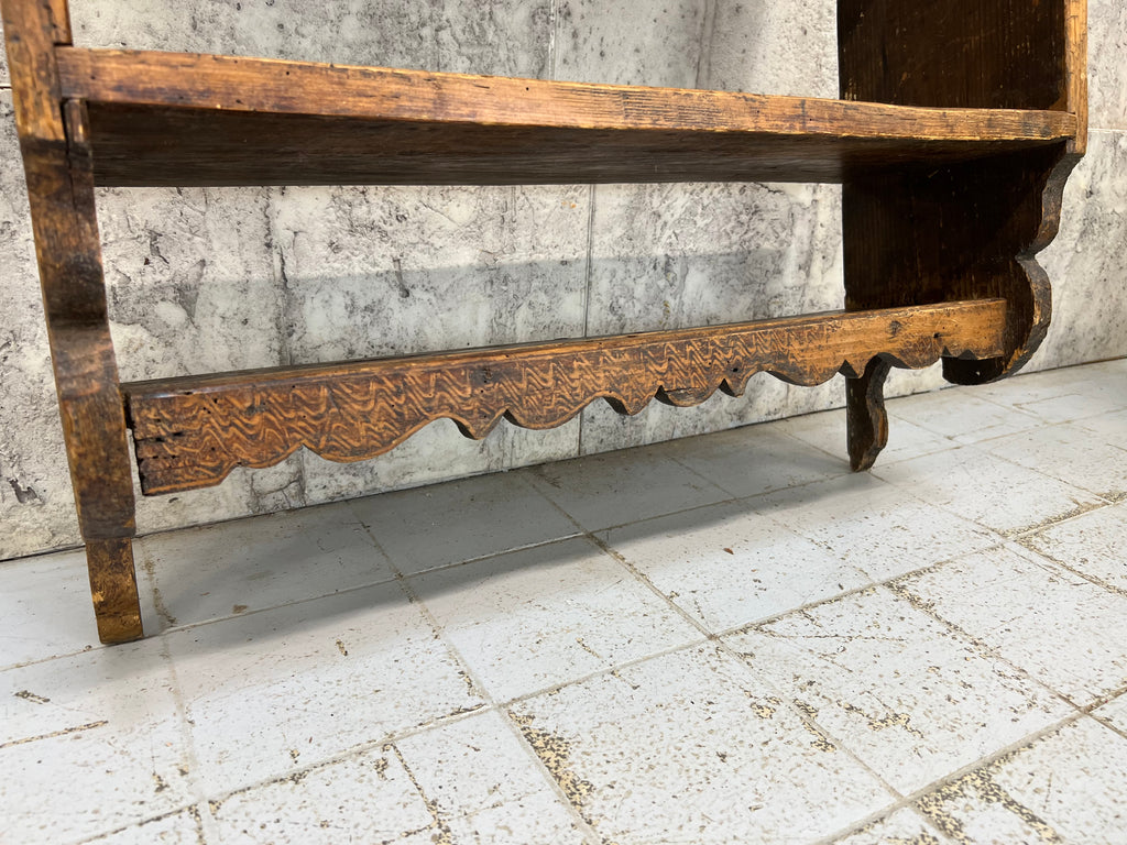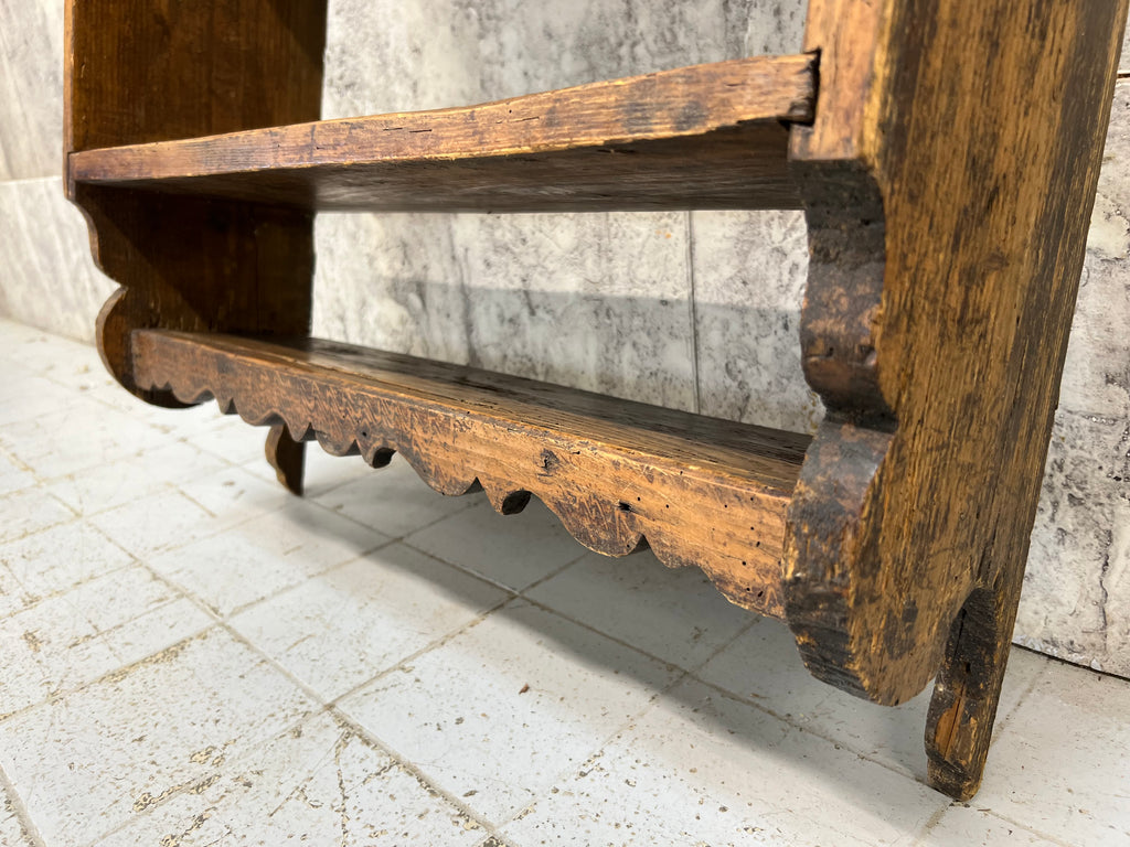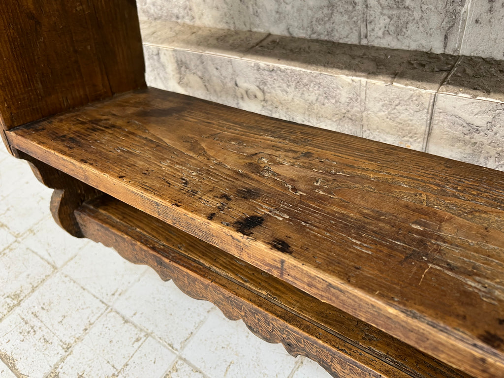 A very rustic, well used and loved set of immensely practical and characterful wooden shelves perfect for use in a kitchen, pantry, hallway, child's bedroom, bathroom etc. There is sign of ancient wood worn and wood rot, but all are treated and this fabulous set is ready to use as they are.
