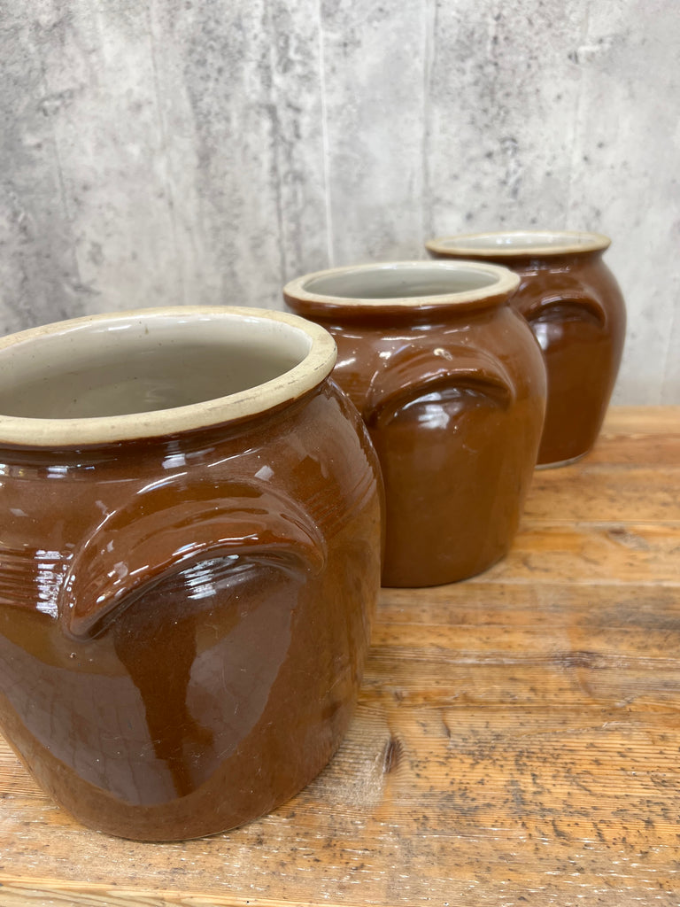 Set of Three Brown French Confit Pots