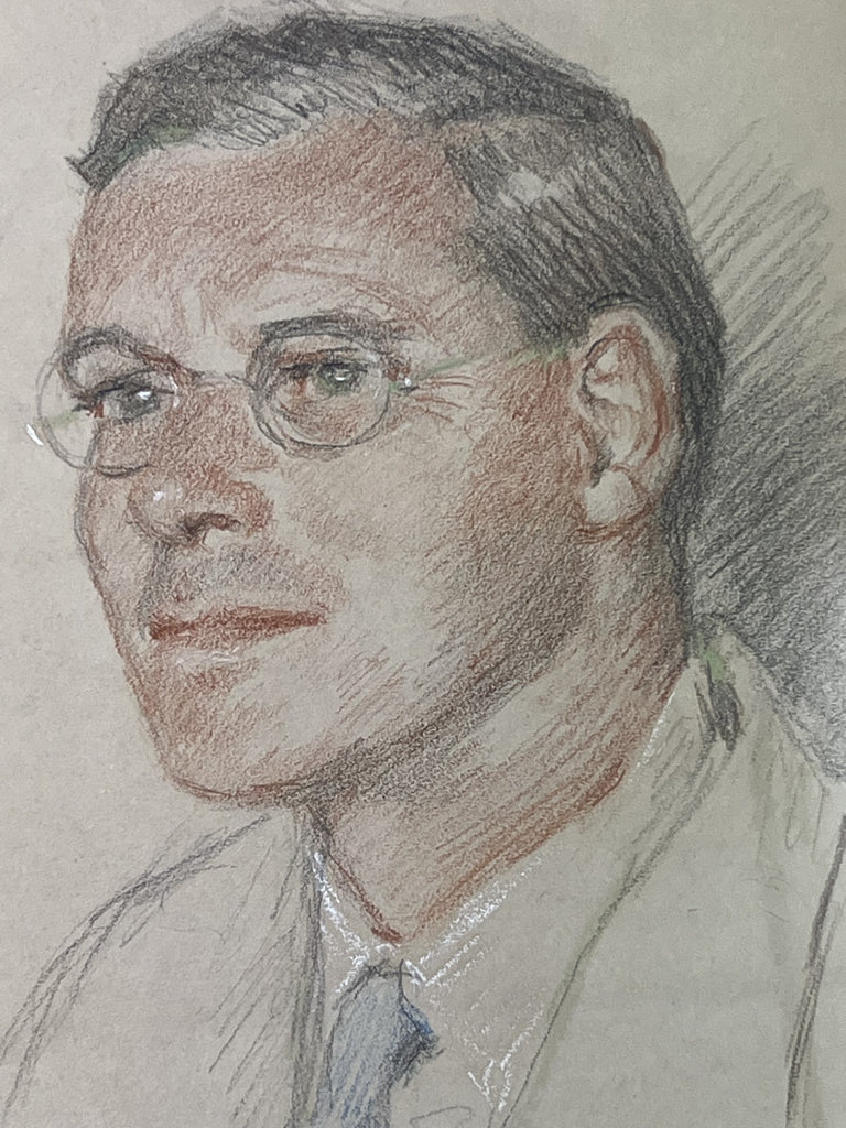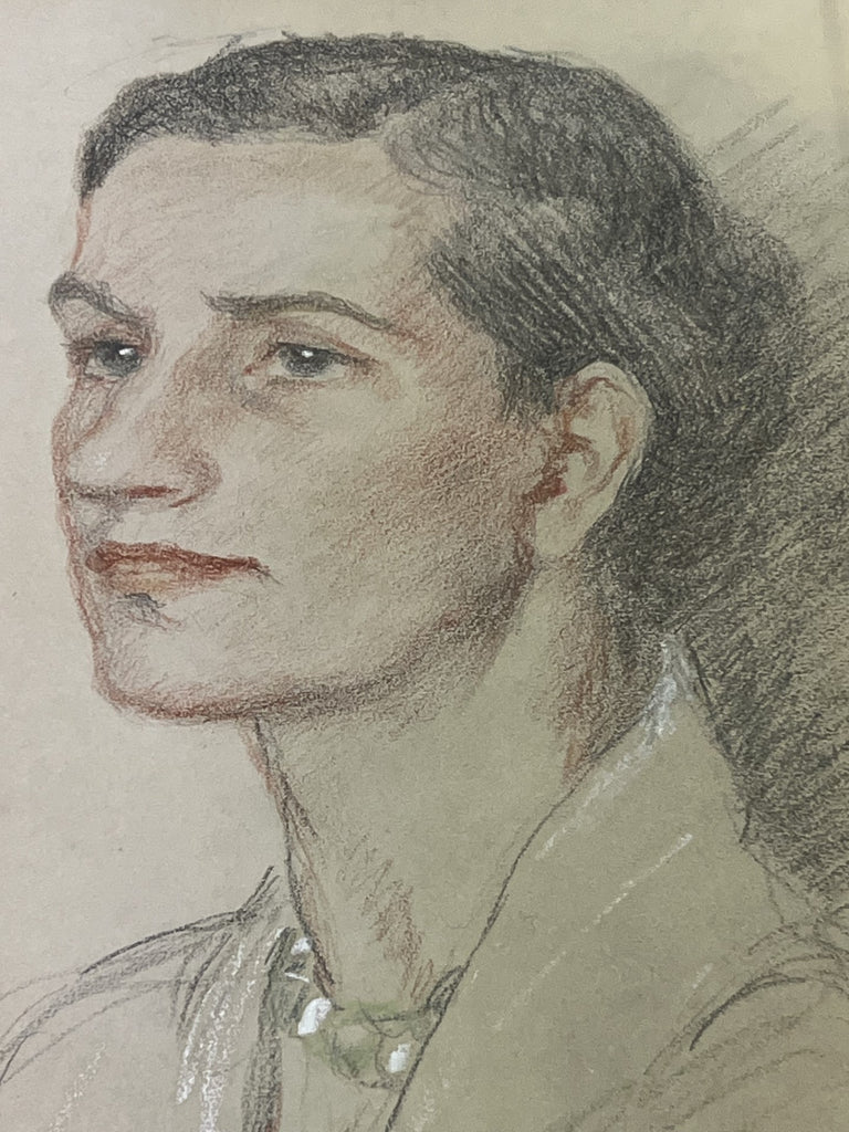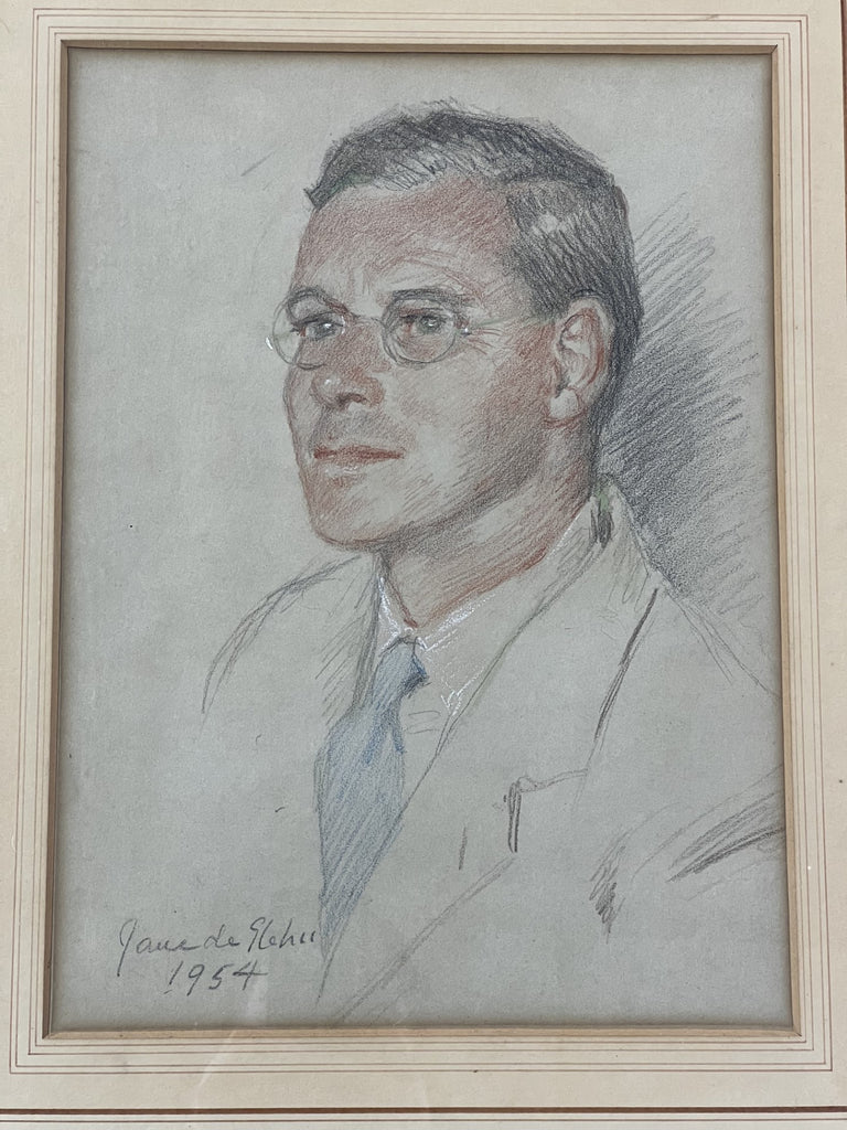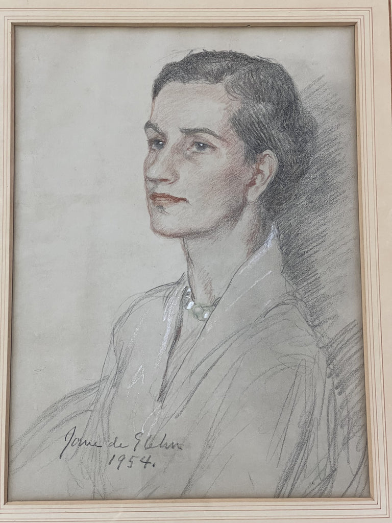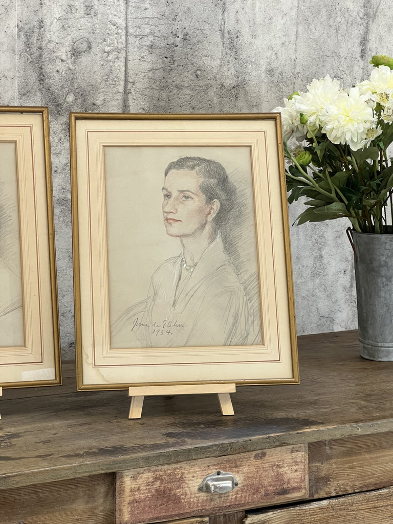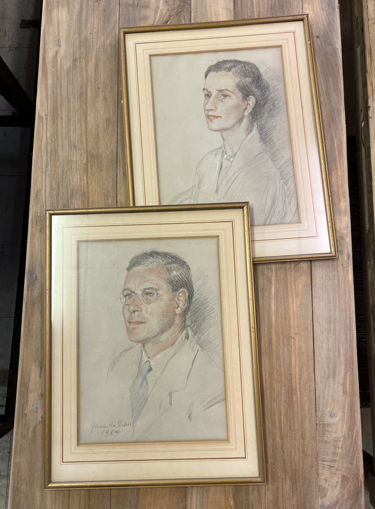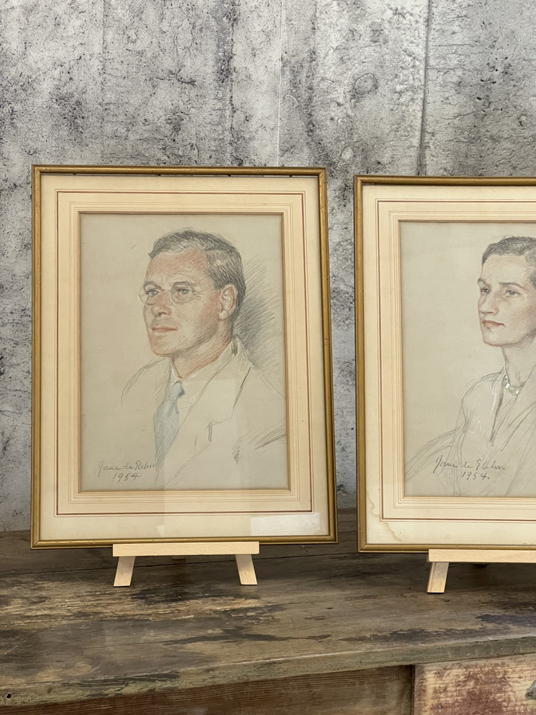 A very handsome pair of Jane de Glehn portraits dated 1954 mounted in original matching frames.