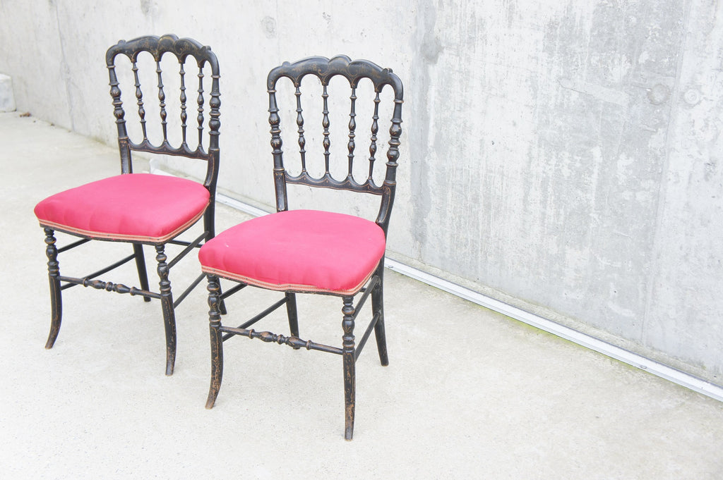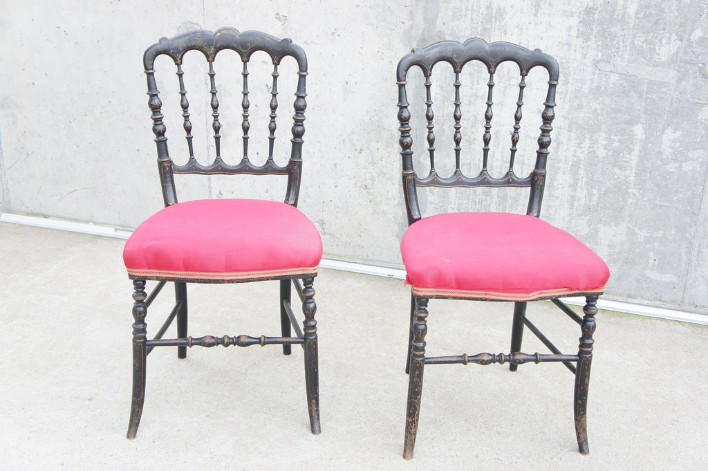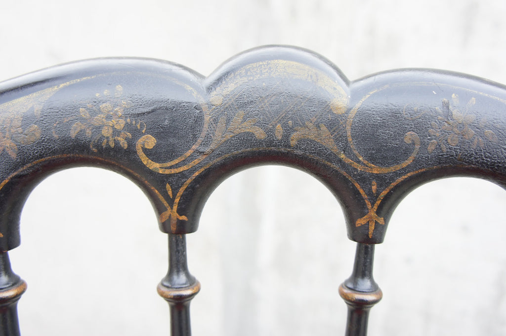 Ebonised Pair of Napoleon III Hand Painted Bedroom Chairs to reupholster