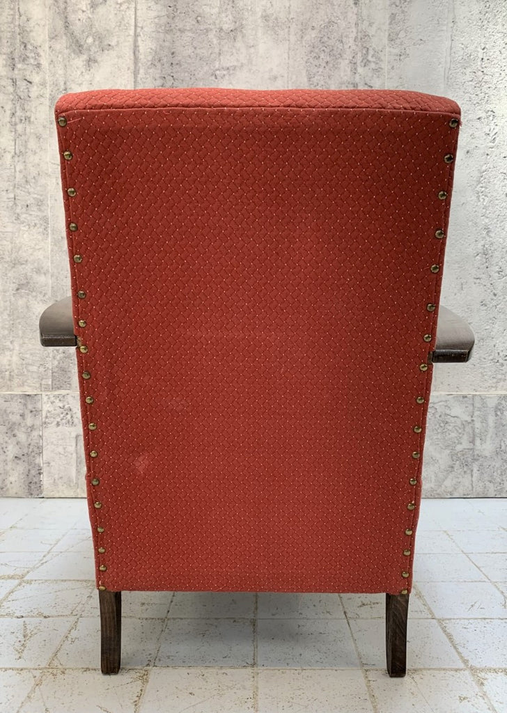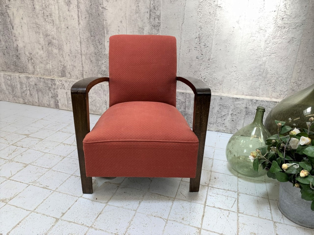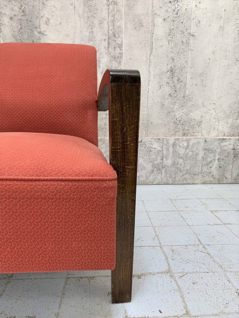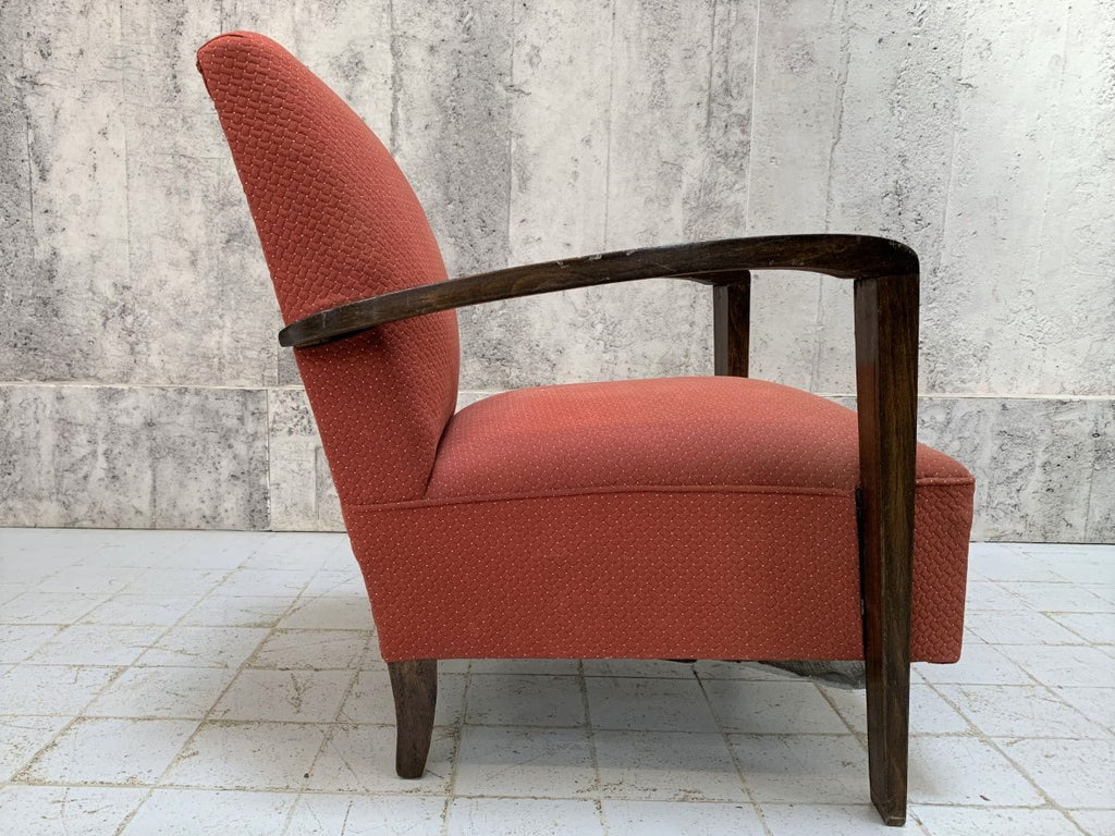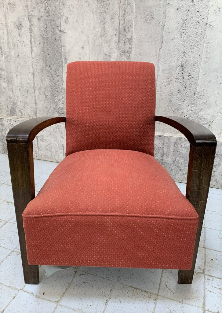 There isn't any angle of this stunning Art Deco Lounge Chair that isn't immensely pleasing to the the eye.  The chair has the usual bumps and bruises you would expect see on a chair of this style and age.  The fabric is original and in good quality.  Suitable to use as it is should you like the style.  These chairs have sprung seats, are immensely comfortable and incredibly beautiful.