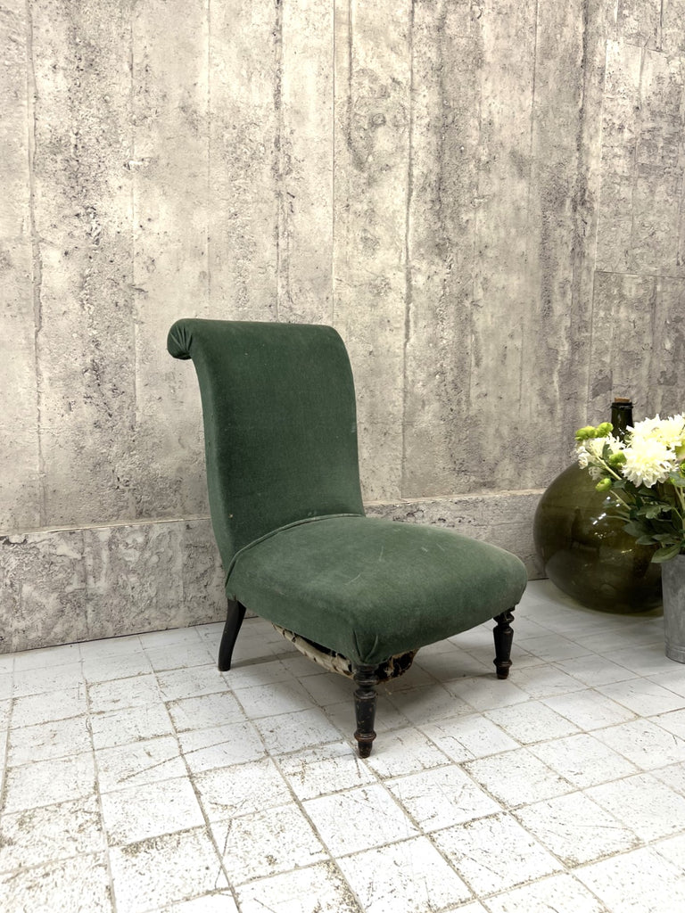 Napoleon III Sage Green Mohair Velvet Slipper Chair