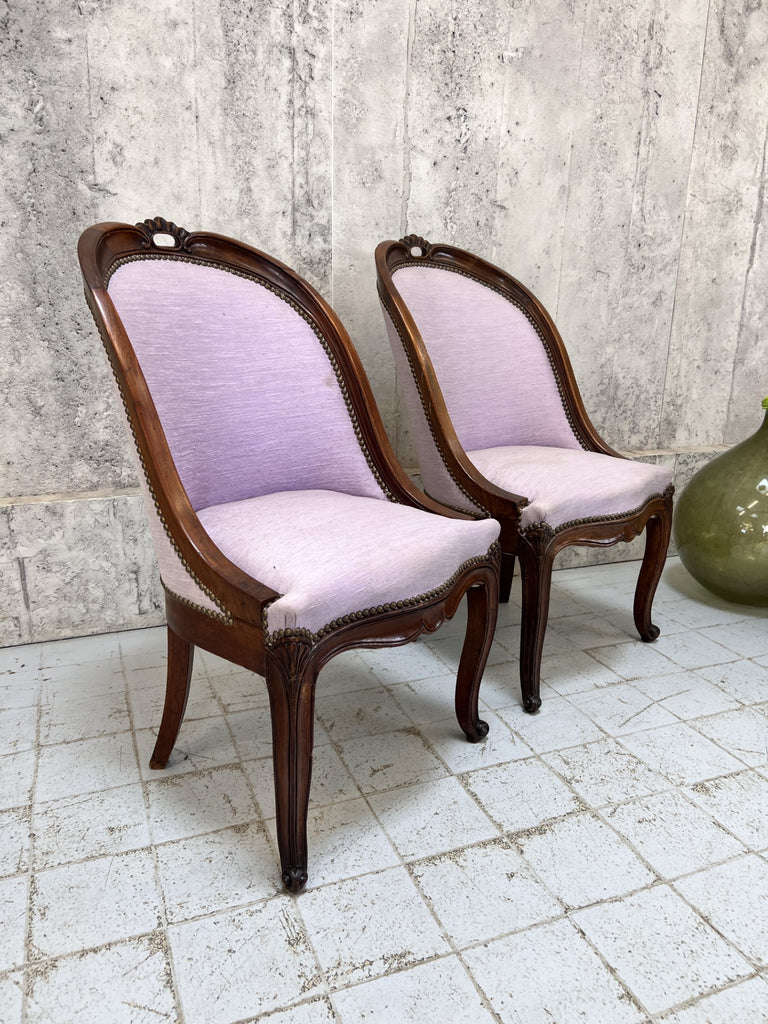 Pair Decorative Lilac French Wooden Framed Chairs to reupholster