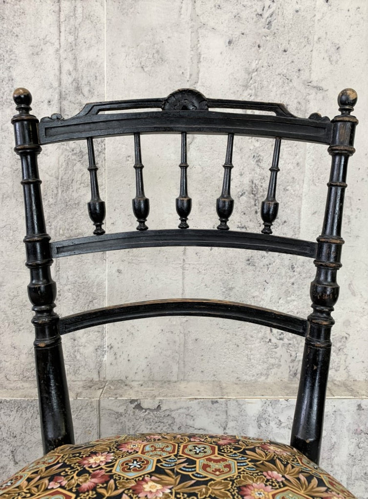 Pair of Decorative Ebonised Napoleon III Hand Painted Bedroom Chairs