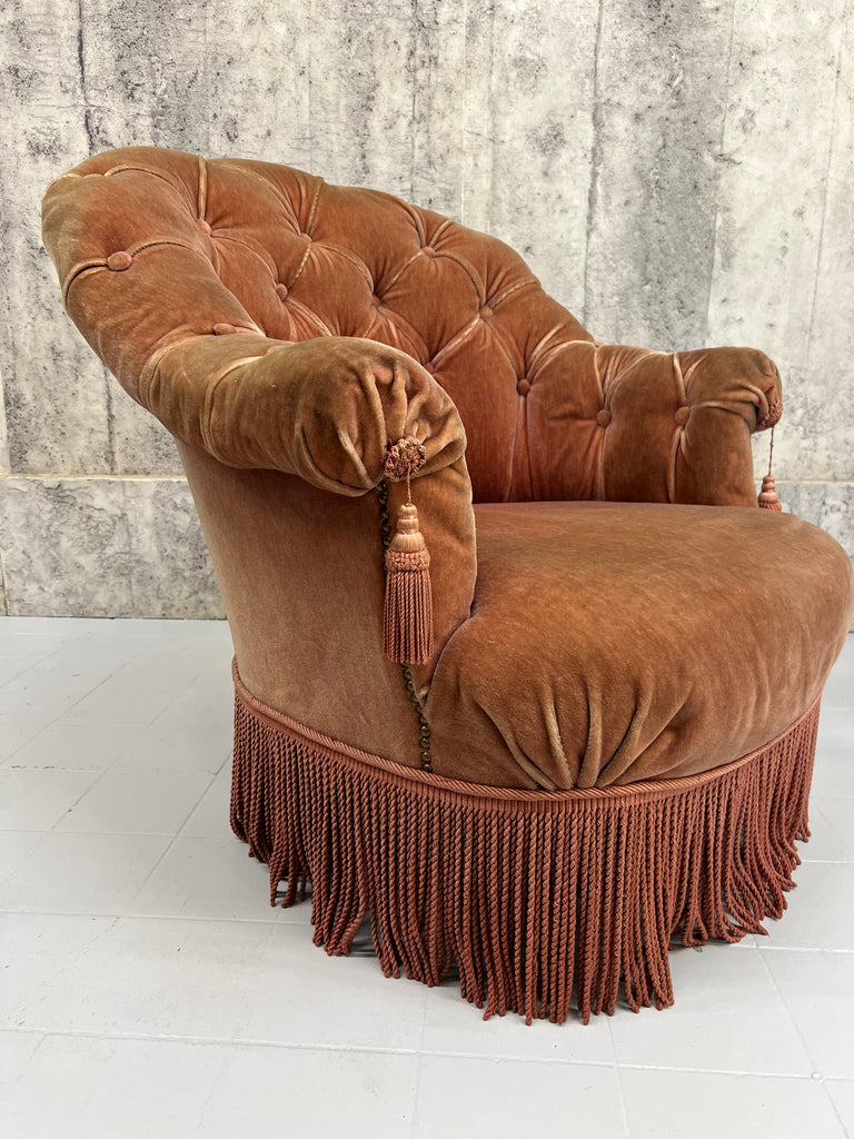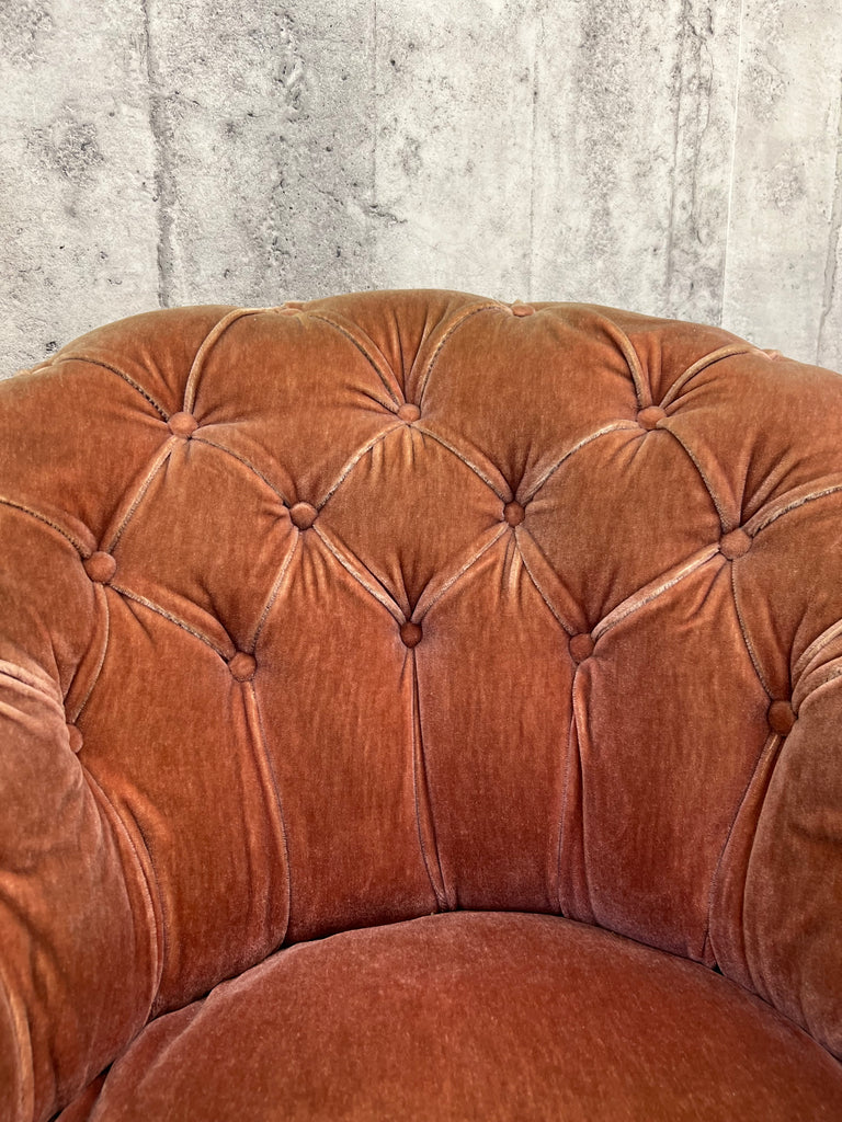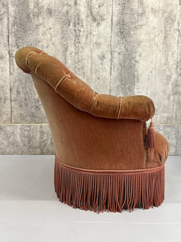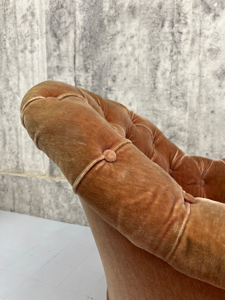 Pair of Mid Century Pink Velvet Button Armchairs to Reupholster