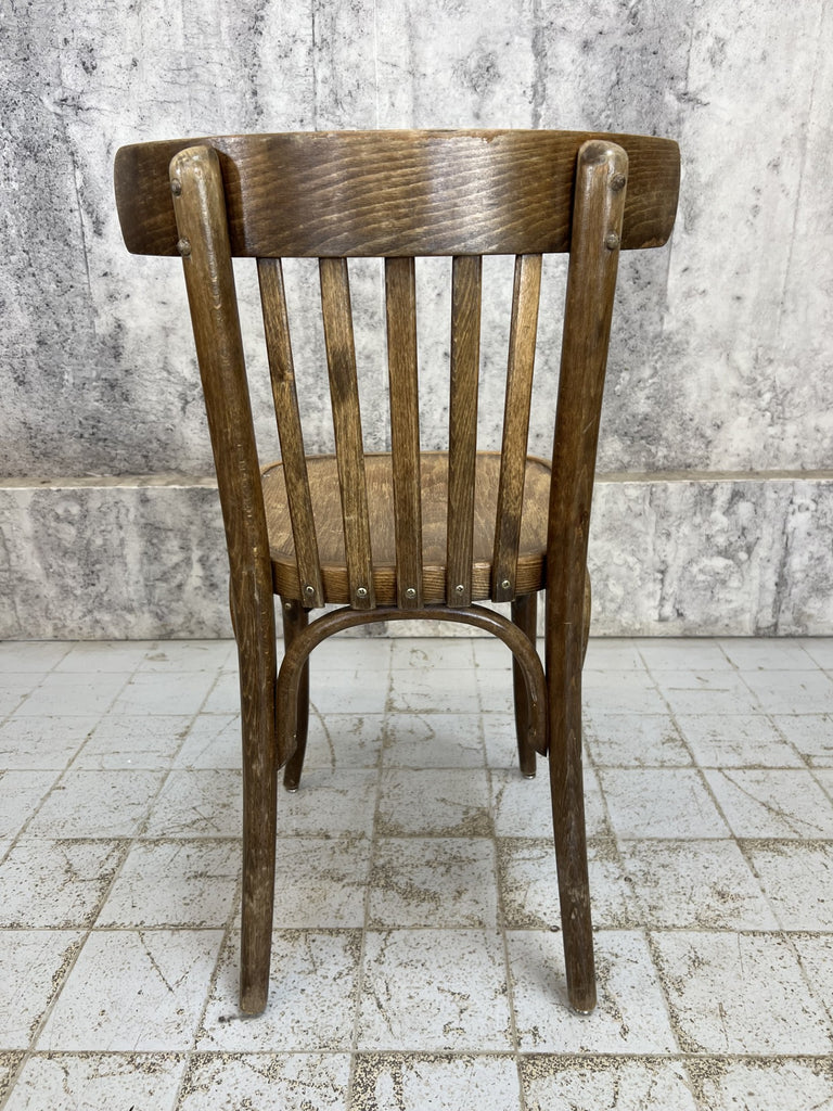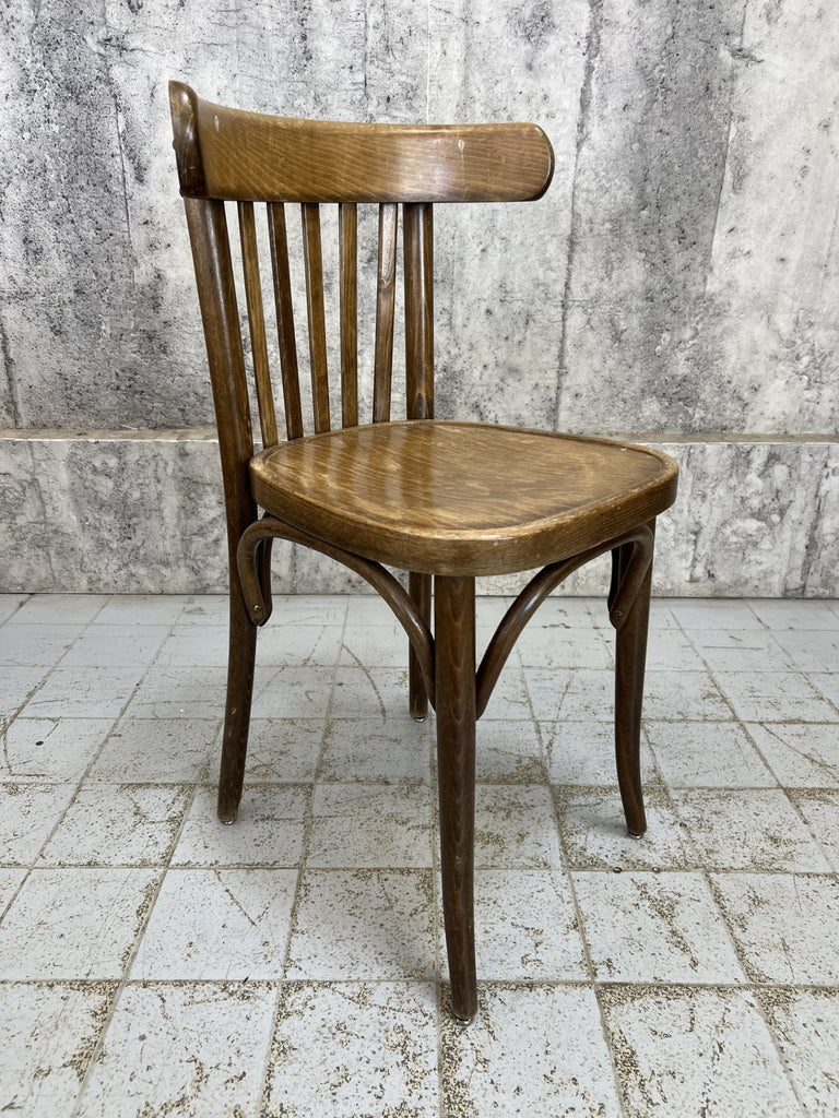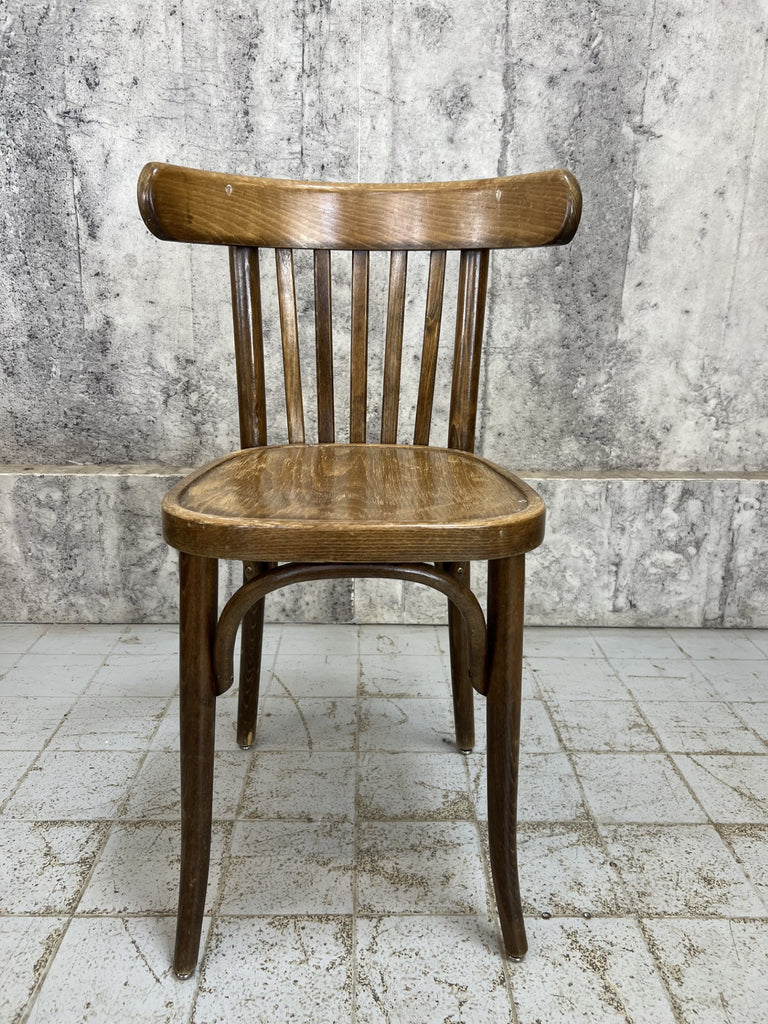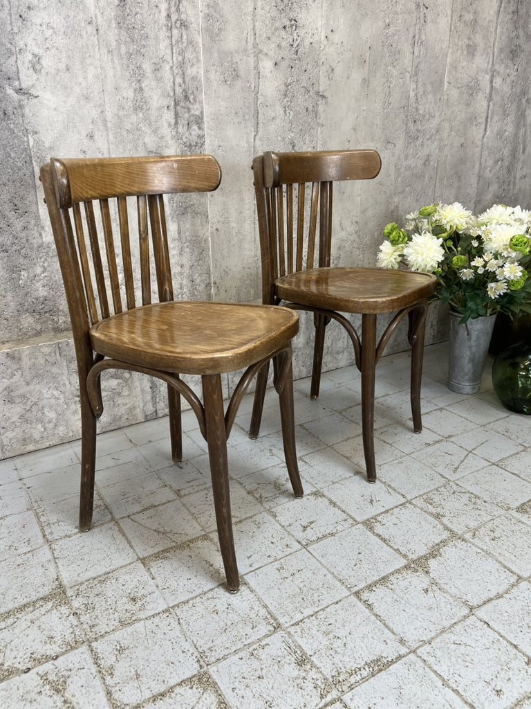 Simple and classic pair of bistro chairs in this really comfortable saddle back style that hugs the small of the back beautifully. In good condition, ready to use as they are.