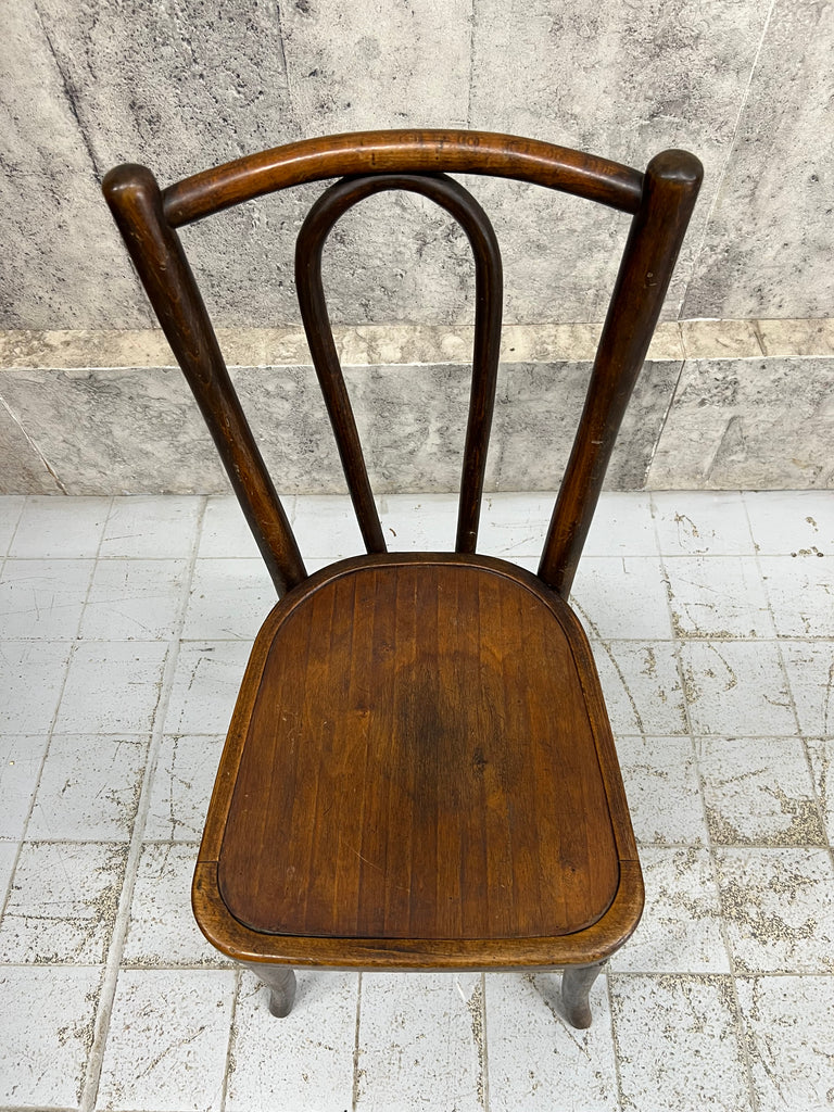These chairs are in excellent condition. This is a classic style of French bistro chair in this warm dark brown wood finish. In good used condition, suitable for commercial or residential use. A fabulous set. Ready to use as they are.