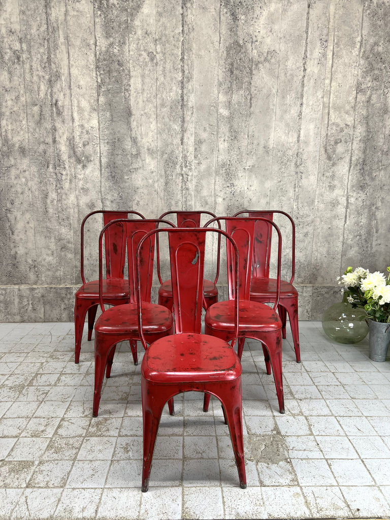 Set of 6 Red 1930's Style Tolix Metal Chairs
