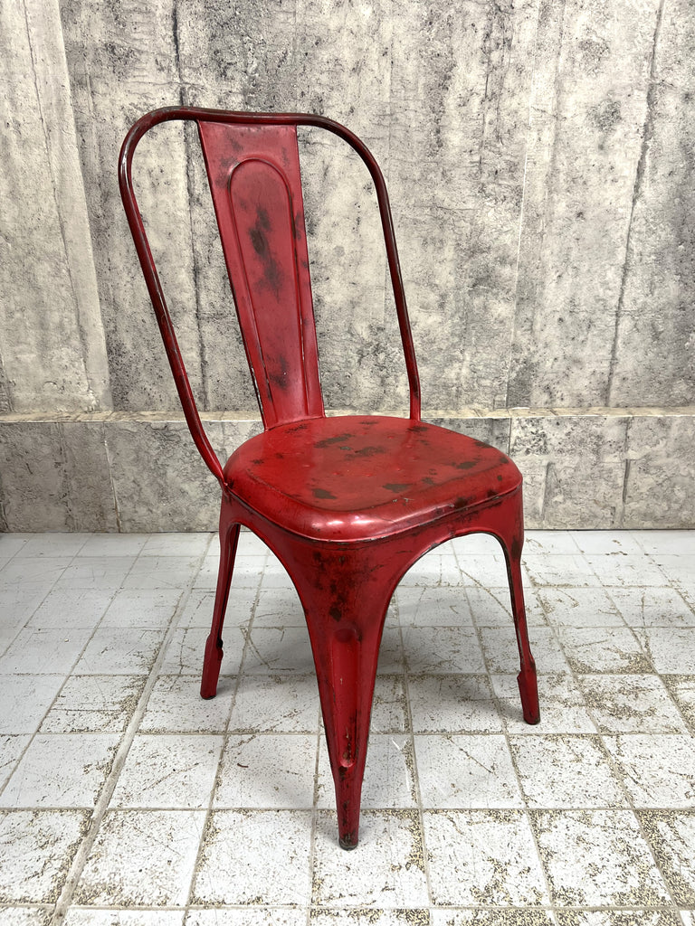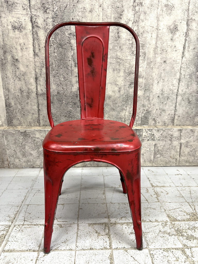 Not of any great age, but in the classic 1930's Tolix design, these metal chairs are a design classic. Ideal for the home or the garden, we have used them in our own home for both, this set has recently come from a French bistro. Sturdy and ready to use as they are, the colour is great fun for festive styling and they stack for ease of storage if they are 'wintered' in a garage.