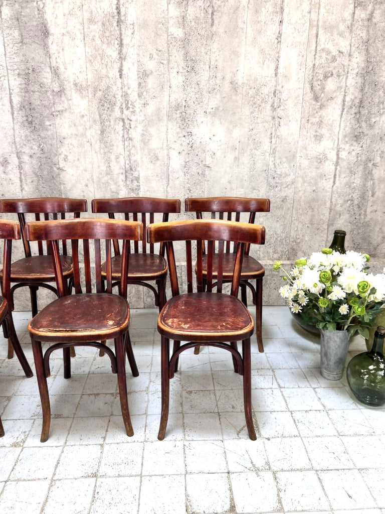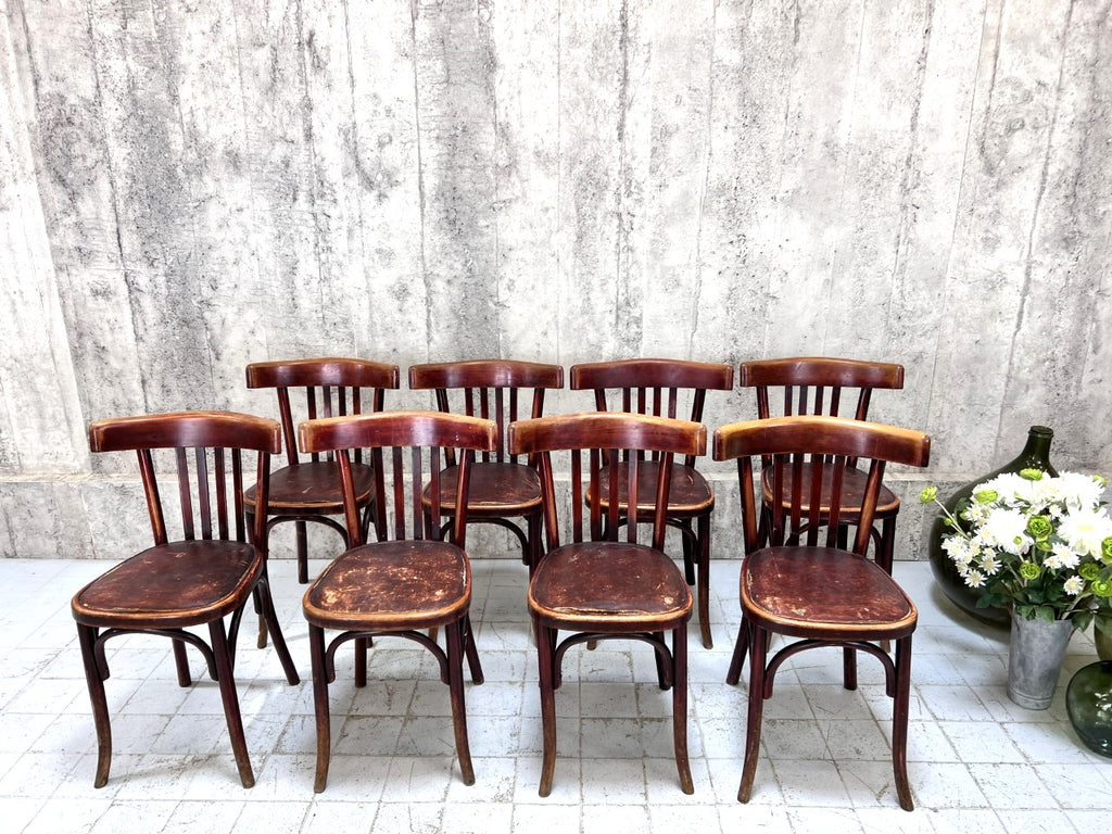 Set of 8 Fischel Bistro Chairs with Original Upholstered Seat Pads