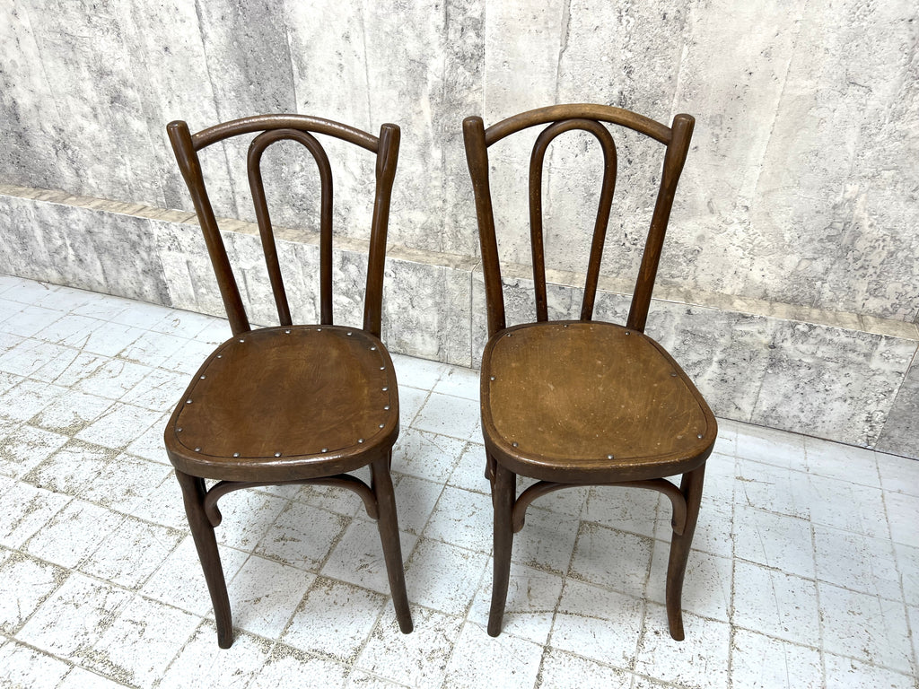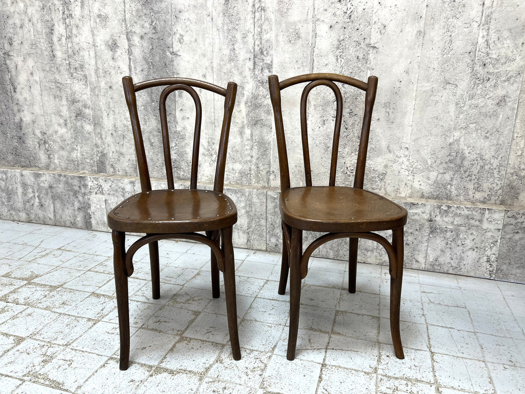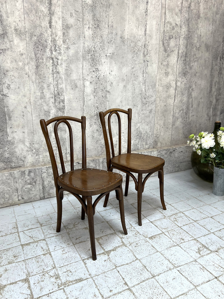 Two Individual Studded Bentwood French Bistro Dining Chairs