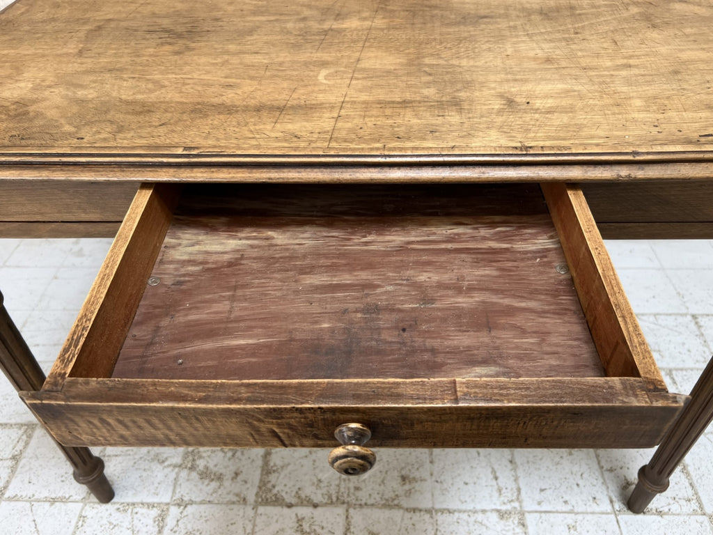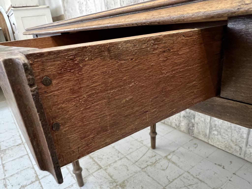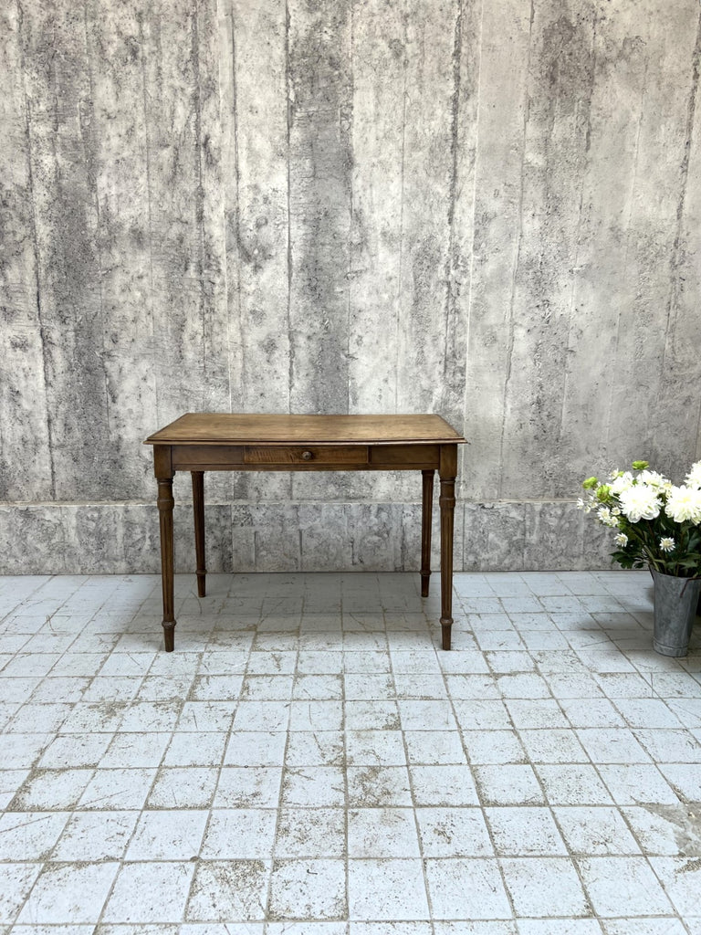 When imperfect is your perfect. The table is a classic, turned leg table that has been made as either a writing desk or an occasional table. TA useful drawer and a lovely delicate table that can be used in a kitchen, in a home working space, in a child's bedroom as a dressing table or desk. A pretty table, ready to use as it is.