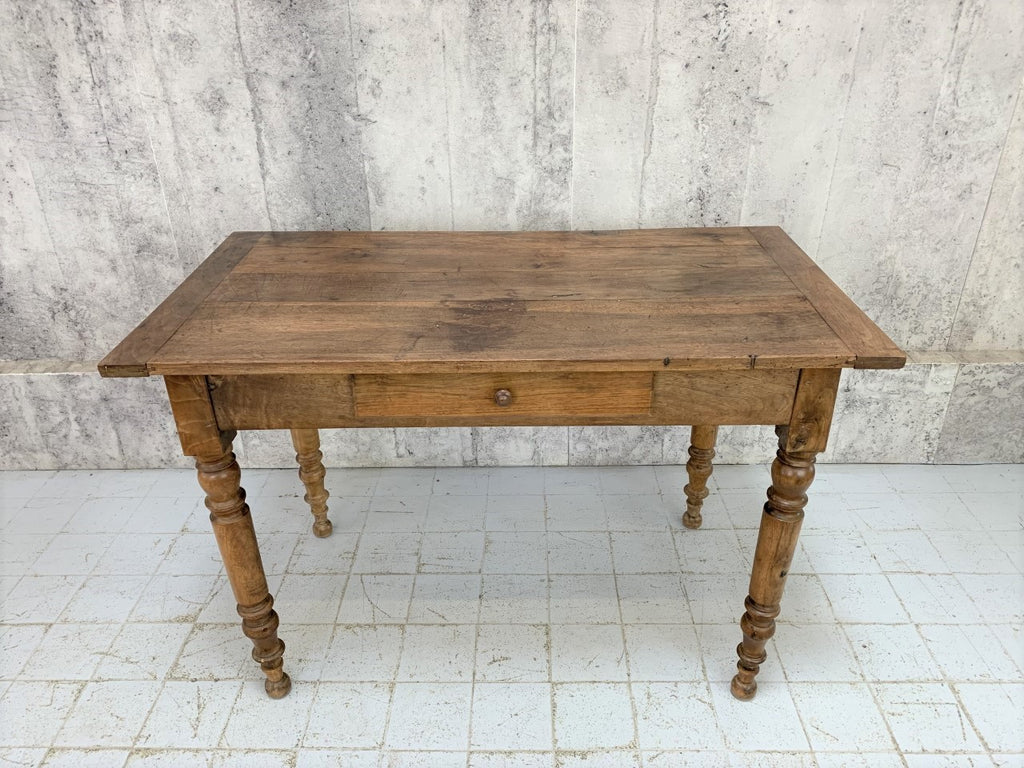 A very fine, solid walnut wood table or desk with a beautiful warmth and patina to the wood and drawer.