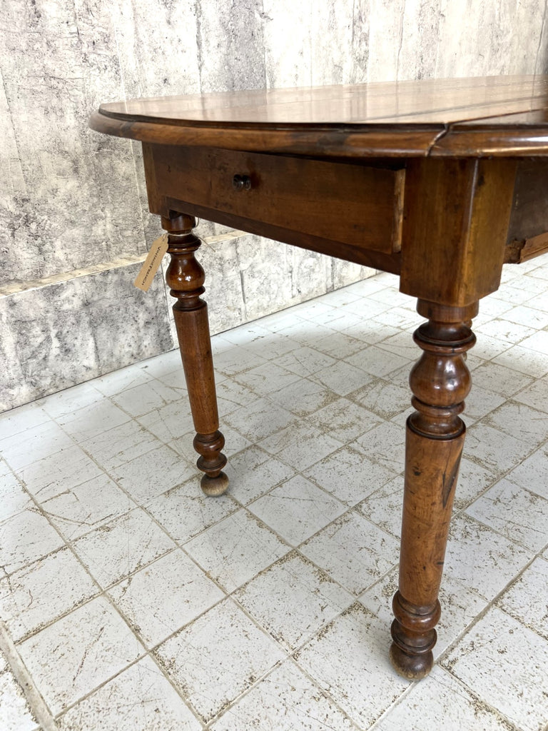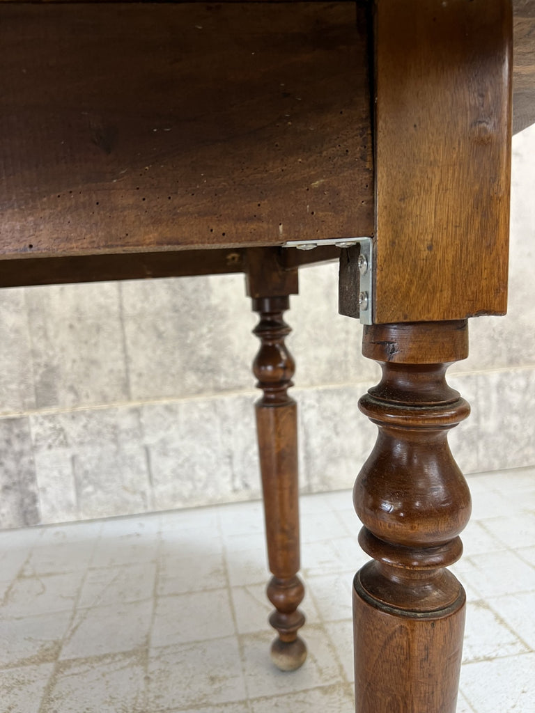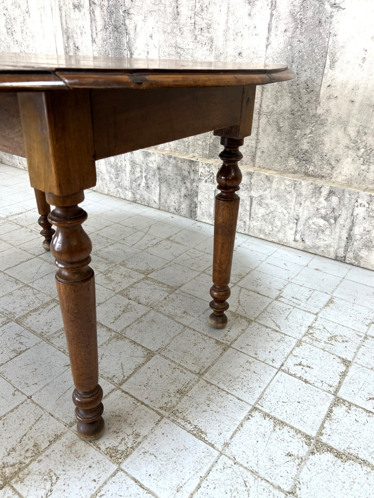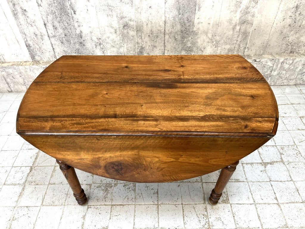 Very beautiful. Classic French drop leaf table, made of a solid satin style wood with turned bobbin style legs. The table could be used for eating at or also as a side table.. I love this style for this very reason.. there are so may options for their use.. you could even use them as a serving table for meals. This piece has been bolted together a bit, with reinforcing additions, please see the photographs. Evidence of old wood worm too which we have treated to be sure. We have priced according. Sound and ready for use.