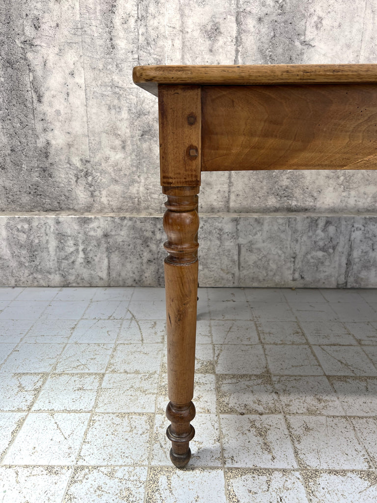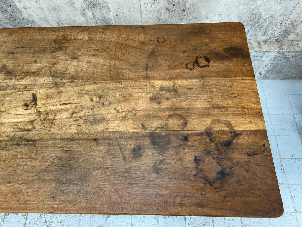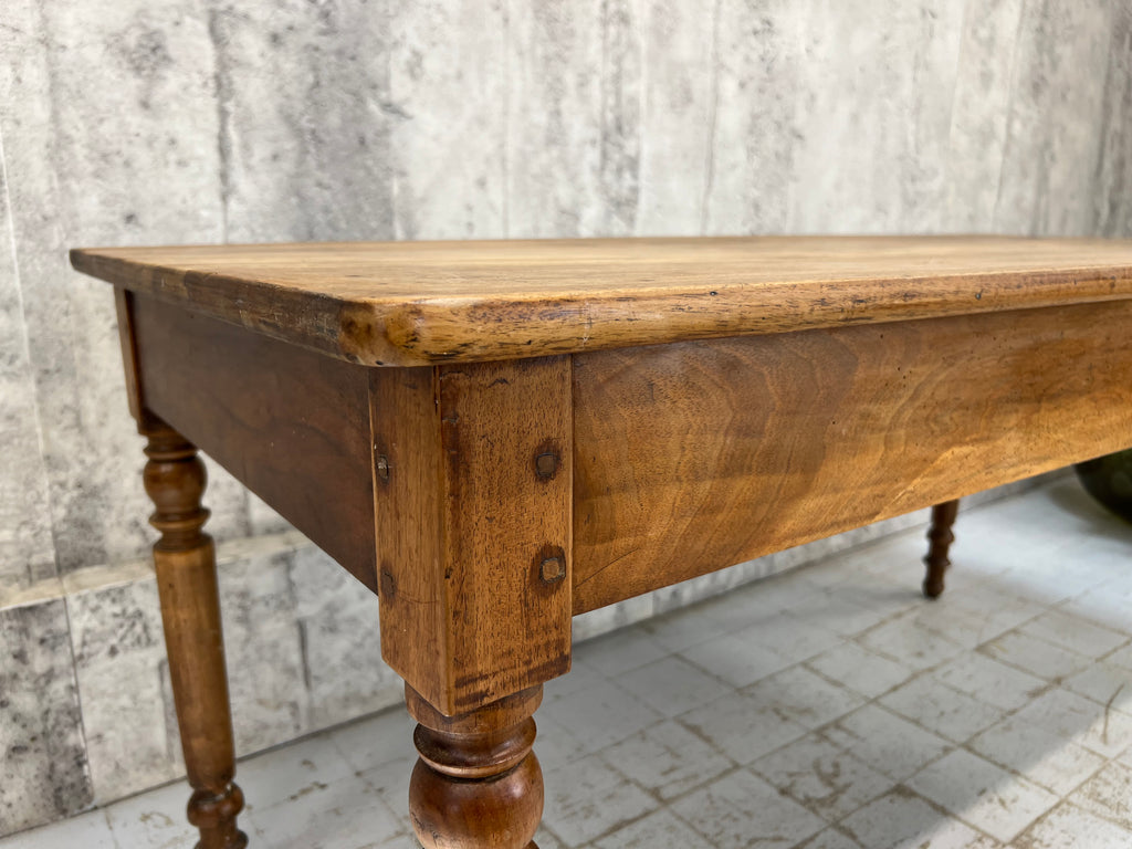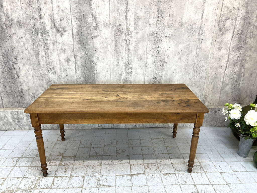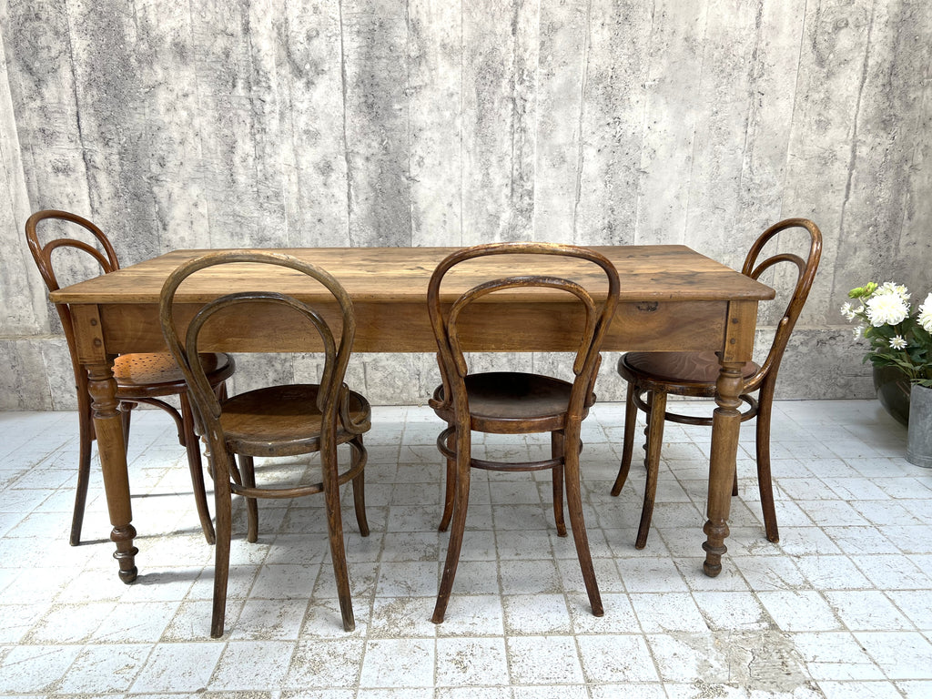 The wood is in lovely condition, with marks of previous use and as you can see old wood worm holes, which have been long vacated.  This table would work well in a kitchen or in a dining space.  Possible to fit up to 2 chairs along each side with 1 at the end, totaling 6 chairs or more bodies if you use benches.  Marry with modern or traditional chairs.  Ready to use as it is.