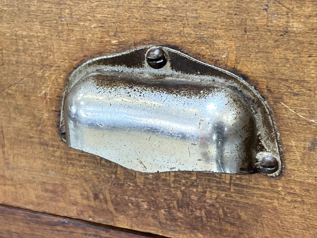 The wood is in great condition, renovated and with the usual bumps and marks that you would expect of a piece of this age and use.