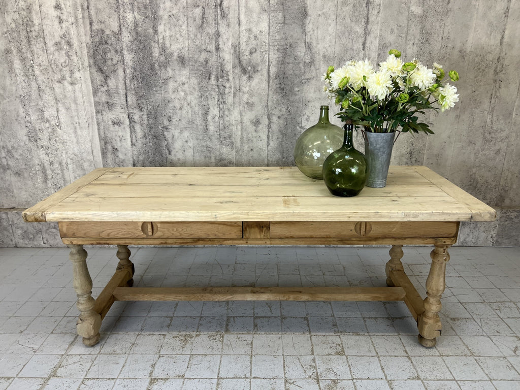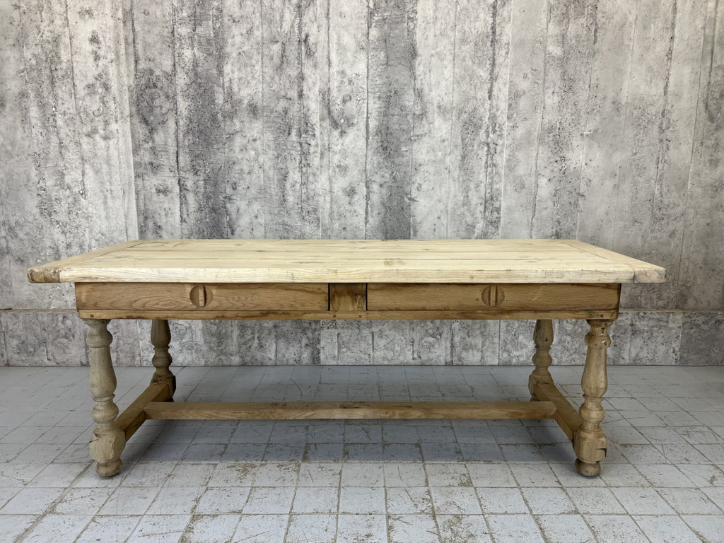 201cm Stripped Oak Farmhouse Refectory Dining Table with Stretcher