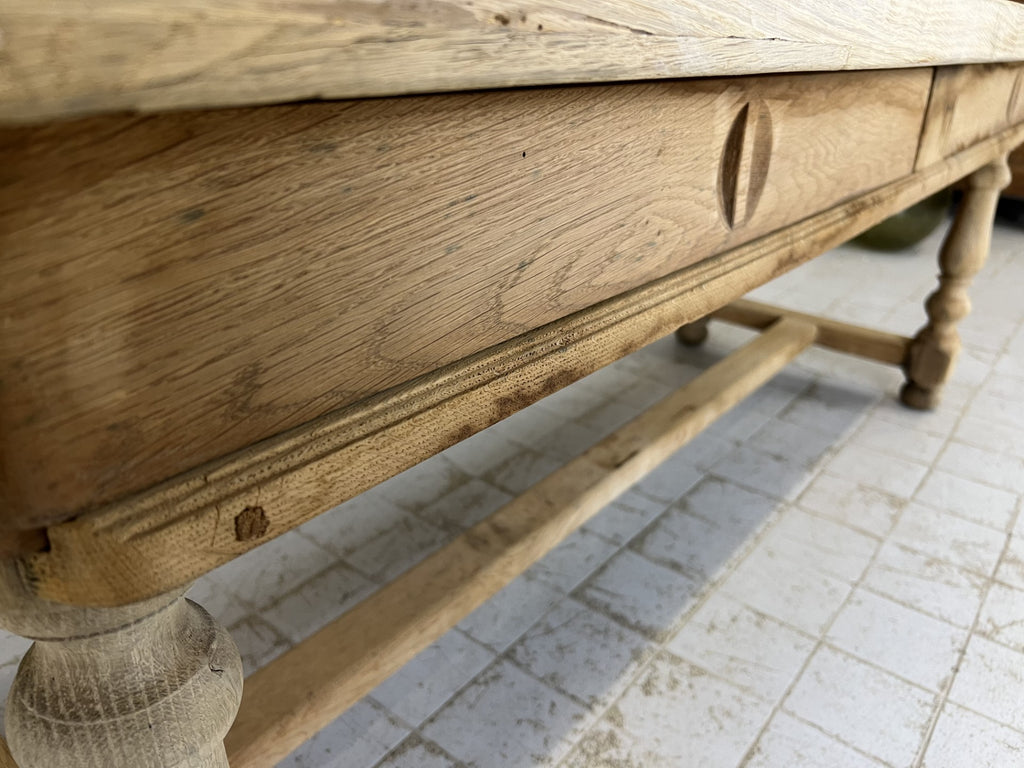 Please make sure that you have enough access through doors, on stairwells and around corners from your entrance way to where you plan to situate this table. These large oak farmhouse tables are heavy and it is necessary to double check all dimensions to ensure that they can be housed happily into their new home.