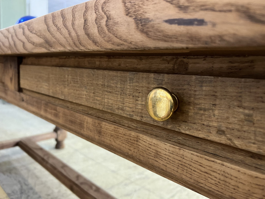 I love these tables.. from Burgundy region of France, these fabulous oak tables have sliding doors revealing a compartment that is where the bread is stored. Only the French would design a piece of furniture with bread storage... I love it. A classic French table design. A heavy and fabulous table that can seat 10 easily.. maybe more with a bench. Ready to use as it is.