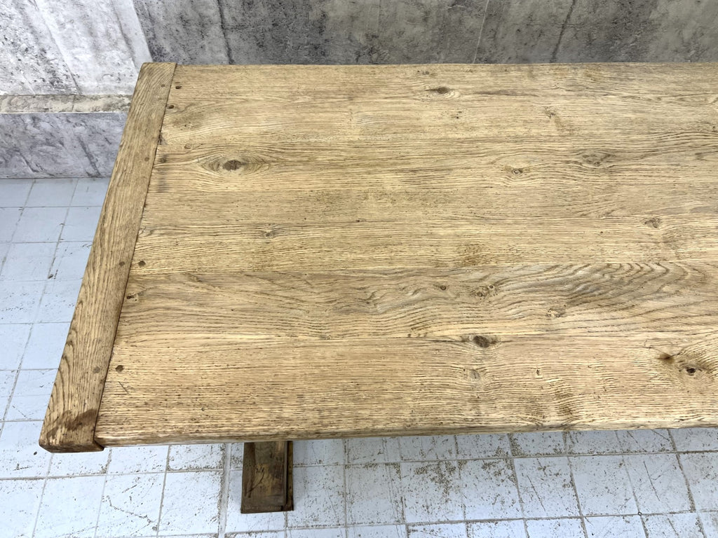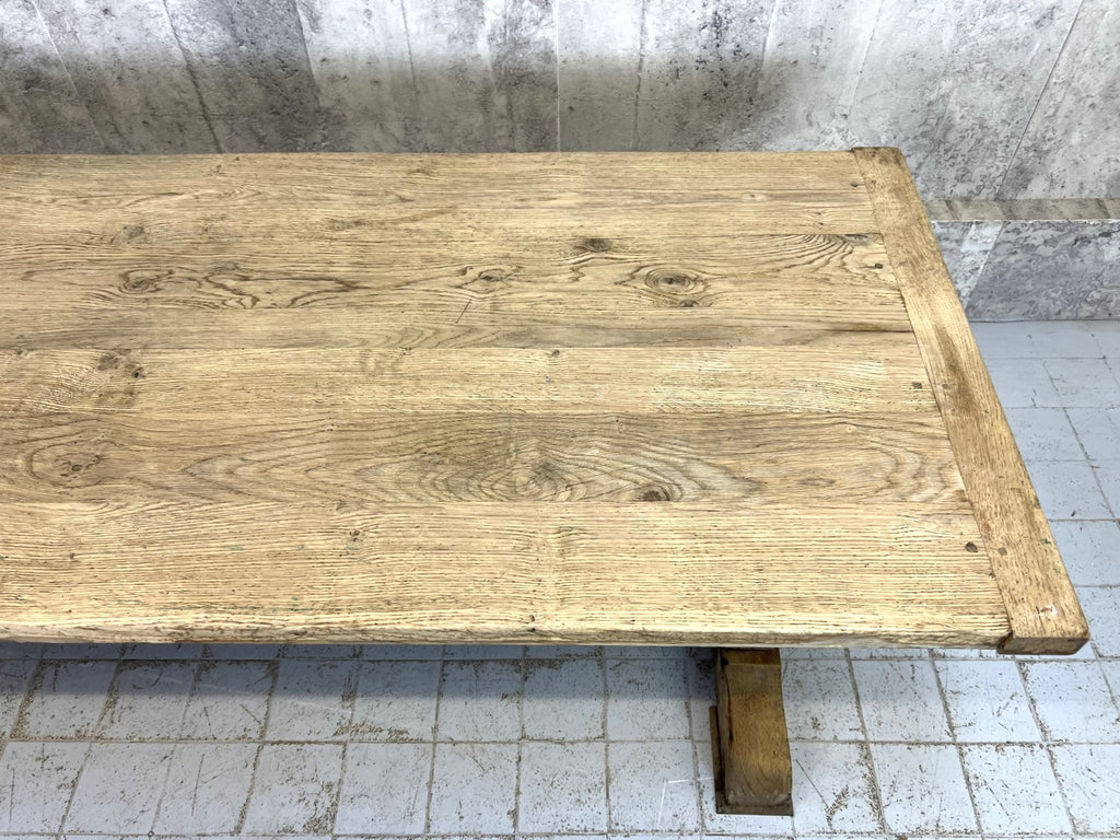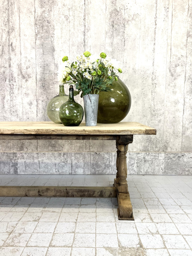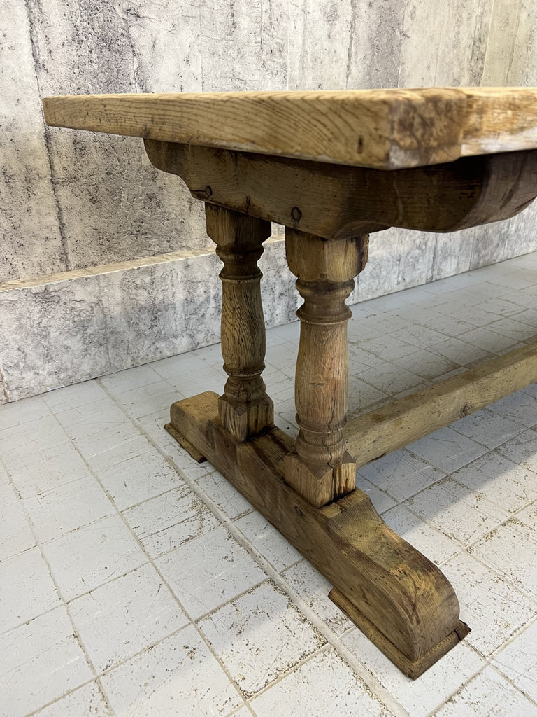 An incredible solid oak dining table, with the most beautiful and unusual legs. Solid, heavy, but with marks of its previous life. Can seat 10 easily.. maybe more with a bench. Ready to use as it is.