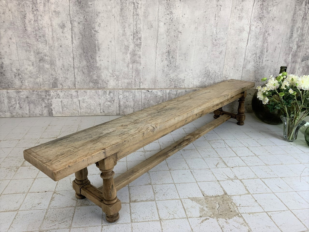 This bench is so solid and heavy and is one of a matching pair if you are looking for two, although we are selling as individuals too. In really beautiful condition, this bench is ideal to use at a dining table and also in a hallway. We have one, very similar which we have in our entrance way, cheering up a plain white wall which guests use to take their shoes on and off, and we pull it round into the dining room when we need extra seating.