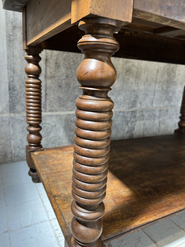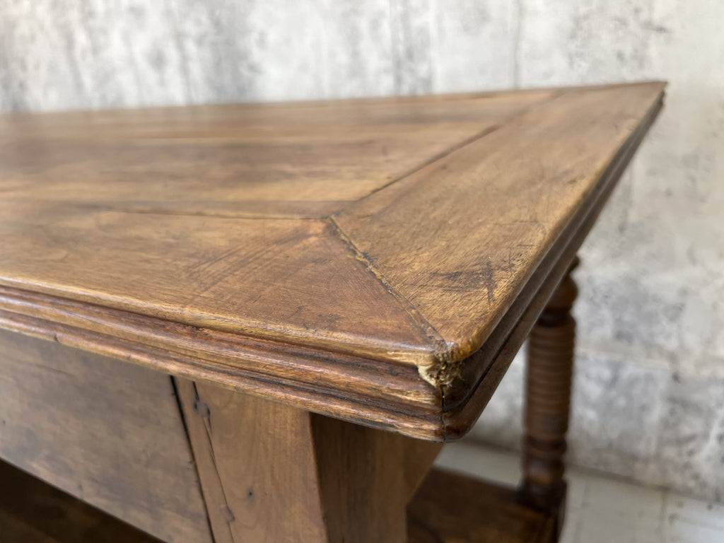 This is an absolutely stunning Bobbin Leg, drapers table made from this stunning solid wood. Unusually the top does lift off which makes it easier to get into smaller spaces.
