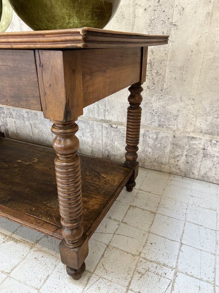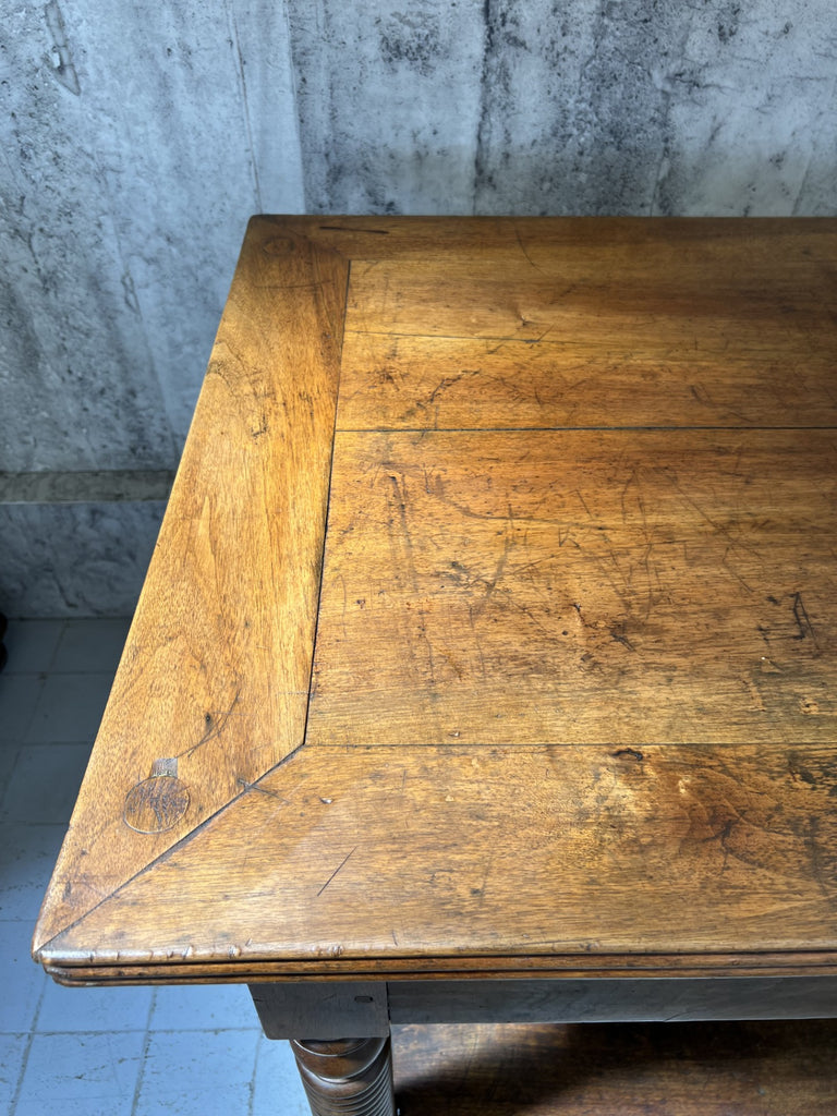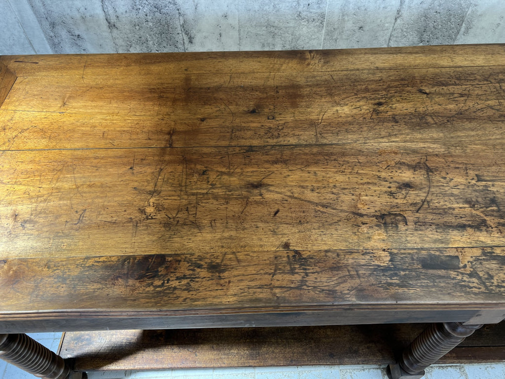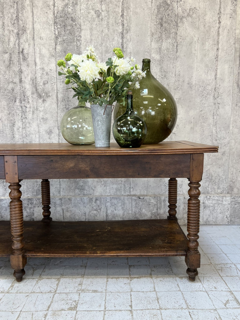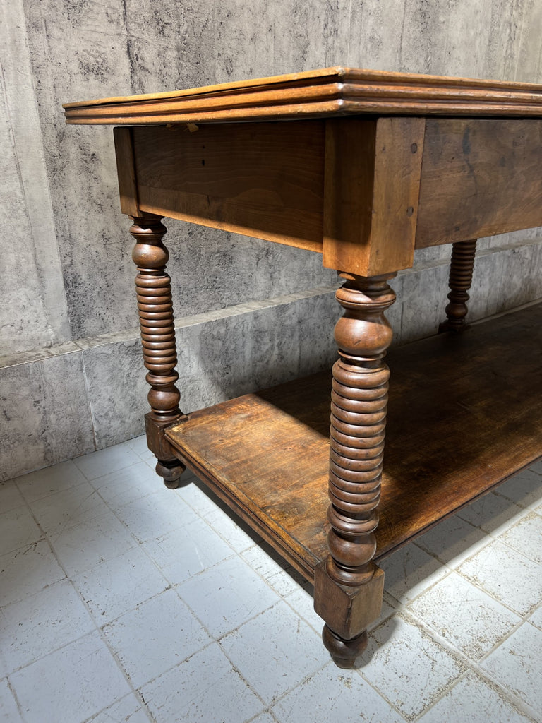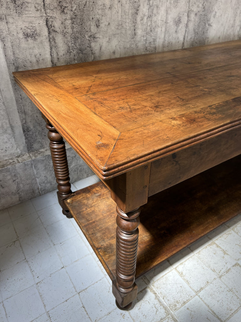 In fabulous, used, worn and loved condition, this table is ready to use as it is as a sideboard, central table in a shop or workshop, as a kitchen island.. the list is endless. A really stunning table, ready be the centerpiece of your space.