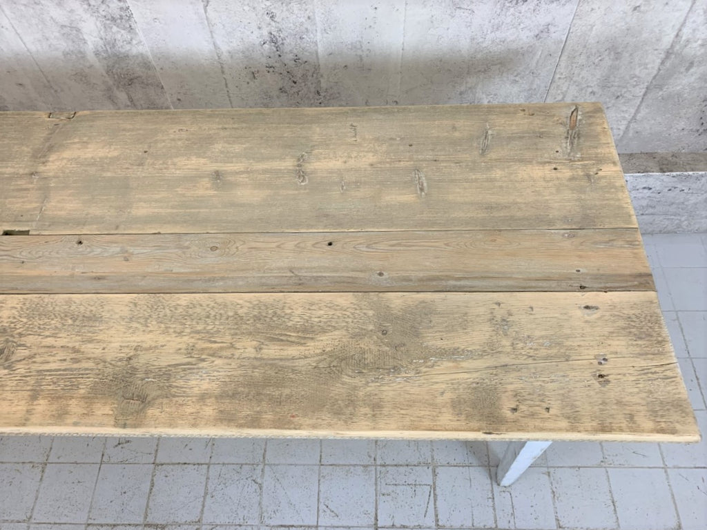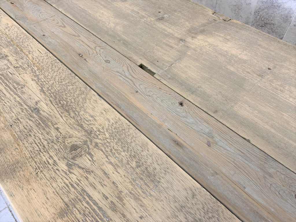 Made from Pine this rustic table oozes character and texture. Strong and ready to use as it is, I believe the table top is recycled wood as there are nooks taken from the wood. Please see the photographs for more detail.