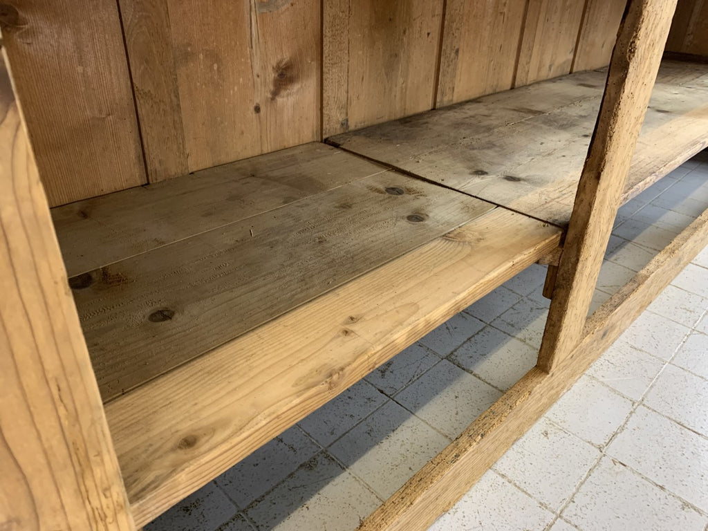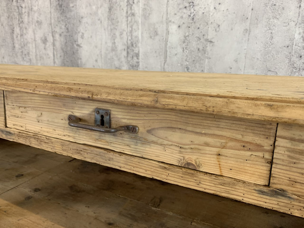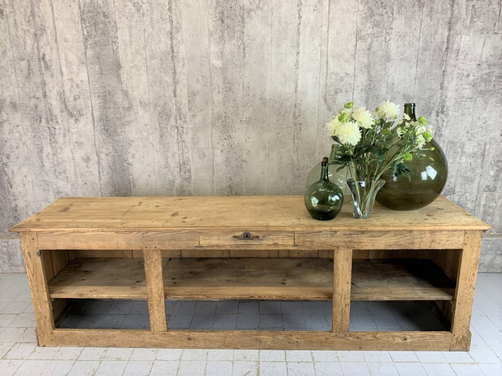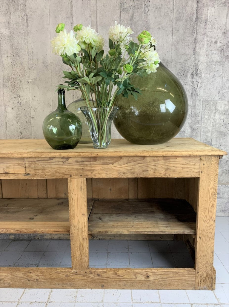 This would be the center piece to your space: dining room, and entrance way, a shop, a restaurant, hotel, bar, even child's bedroom or playroom. Made of solid pine. I would love to see this also in a kitchen as a sink stand or a kitchen island.. the shelf would store lots of pots, crockery etc and the drawers are a handy size. I have a piece just like this in my own office. I use wicker and coloured boiled wool storage baskets to store what is necessary and its lovely to look at the styled open shelves. A simple, versatile piece. The back of this piece is beautifully panelled so can be used as a stand alone piece is a shop, bar etc.