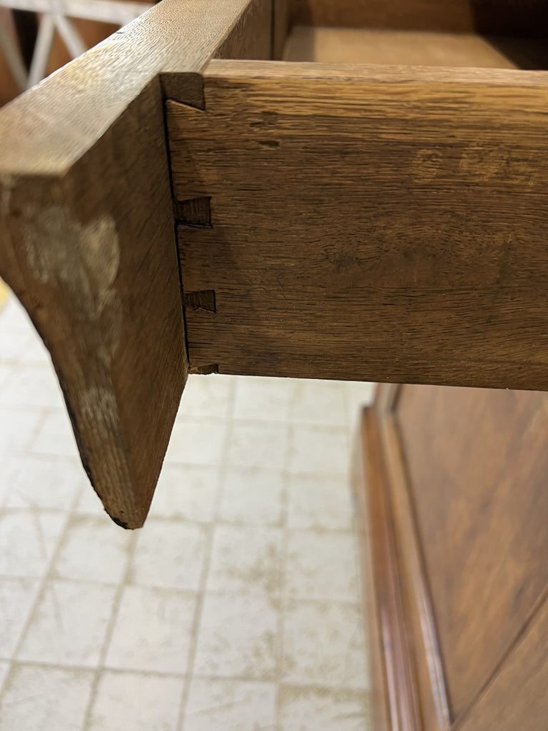 You can see that there is historical damage to the bottom right hand hinge on the door. The wood has broken off the frontage, but we have checked the hinge and it has been reinforced and is strong and sturdy for much much more daily use. There is evidence of historical wood worm, but these are long gone and we have treated to be doubly sure.