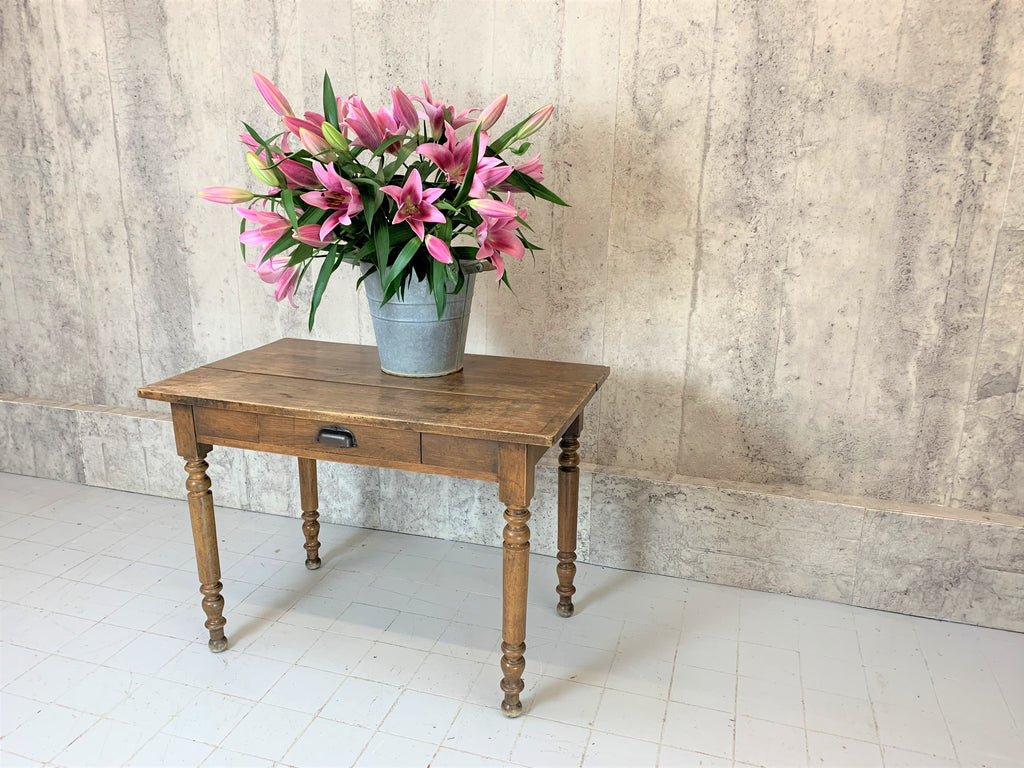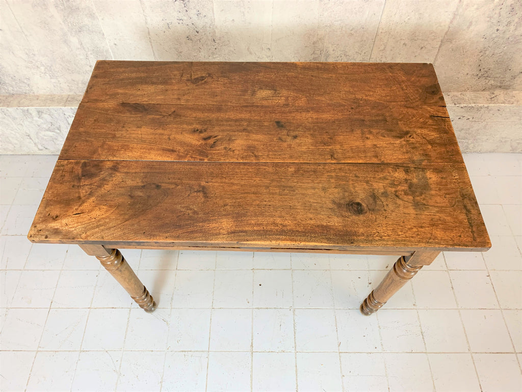 Simply beautiful. This classic walnut wood bistro table has beautifully turned legs and is ready to use in a residential or commercial property. Classic French !! I would like to marry it with metal chairs or upholstered modern chairs.