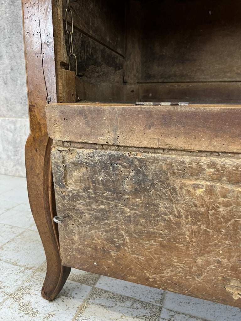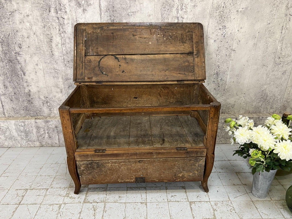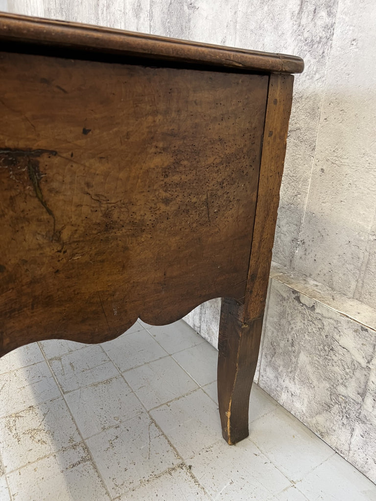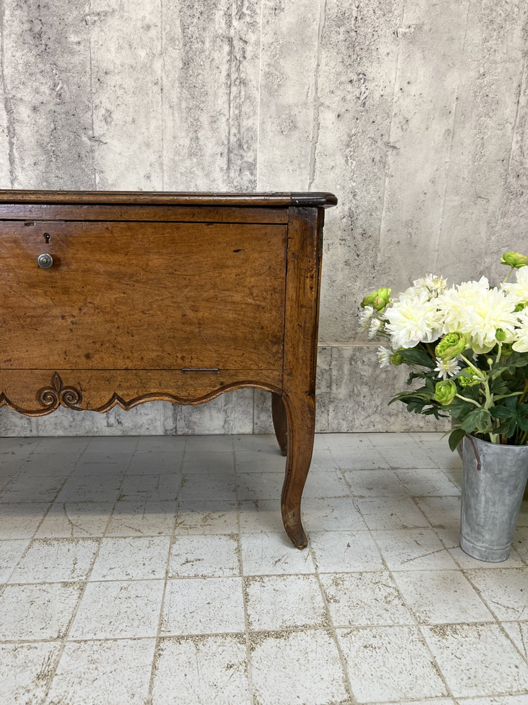 A fabulous, absolutely unique chest that would make the most perfect Storage for electronic devises, as it has been used in the past. The piece is made up, I believe, from lots of old parts and has evidence of old wood worm, breakages and fixings, breakages that have been left to wear over the years. This is a charming piece, probably because of the story of time marked all over it. The patina is beautiful and the table is solid, heavy and in ready to use condition if imperfect is your perfect. A unique and fabulous piece, ready to use in a modern or antique scheme.