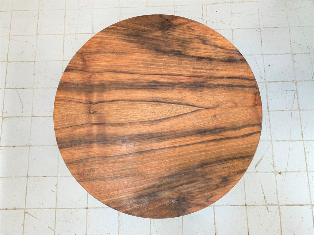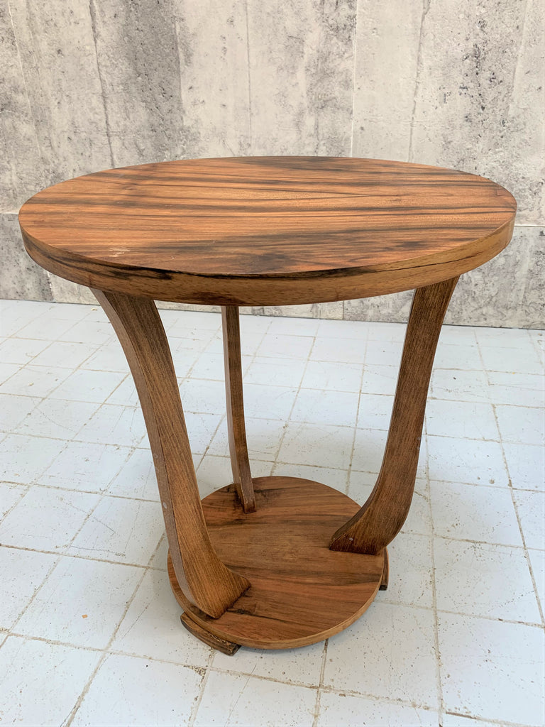 With a very beautiful piece of decorative wood has been selected to make this table top. It has stunning markings and the wood has been 'butterflied' to create this mirror image. A classic art deco shape. A very beautiful side table or bedside table even!