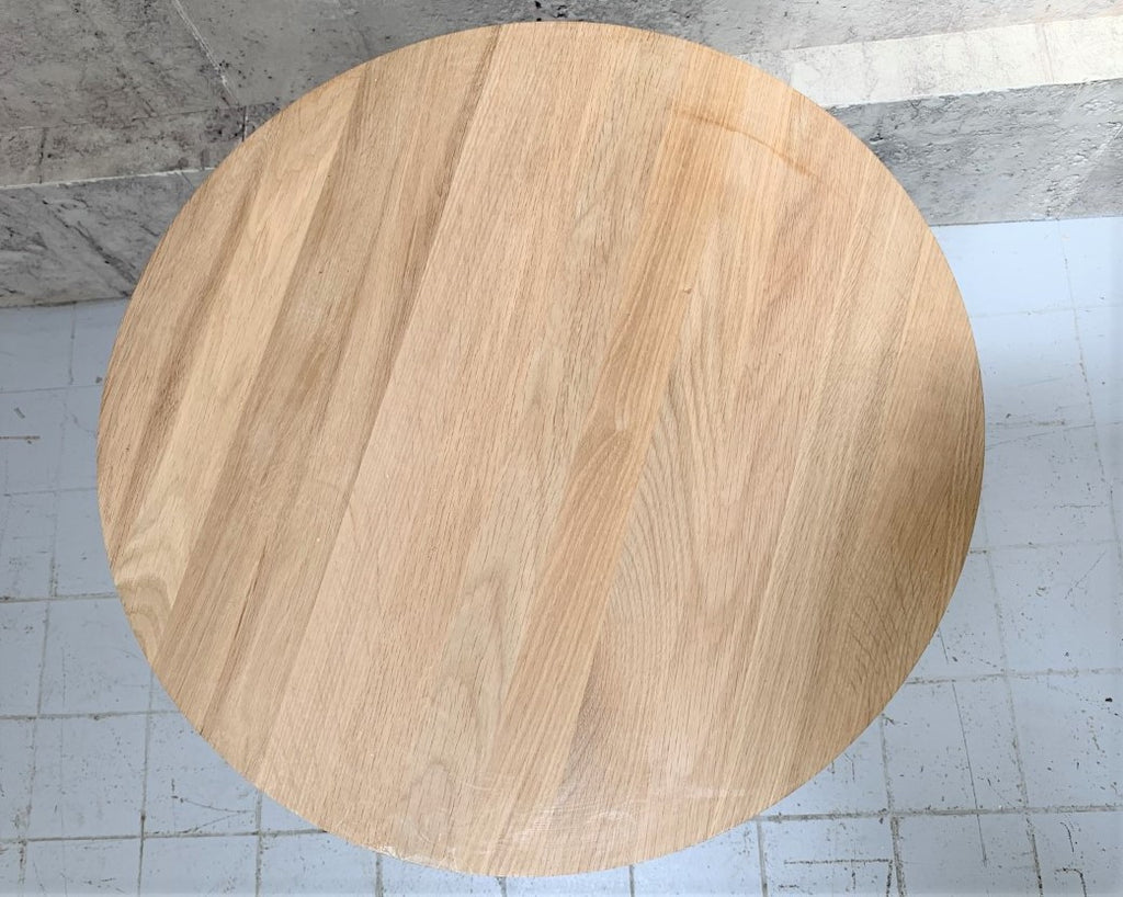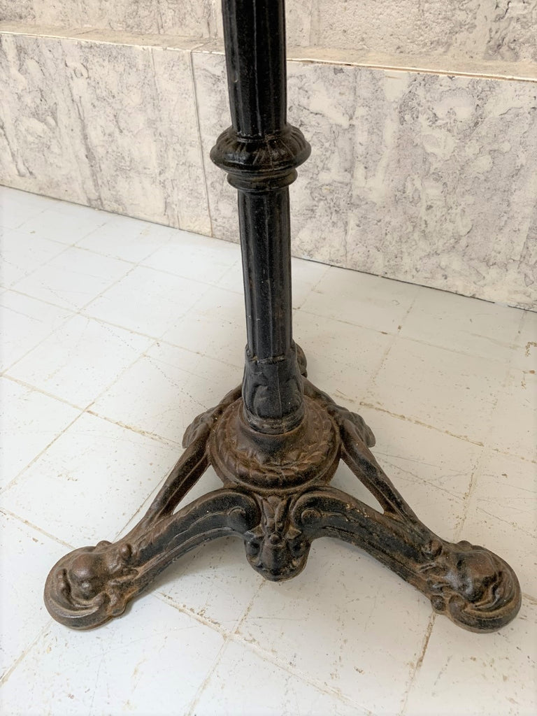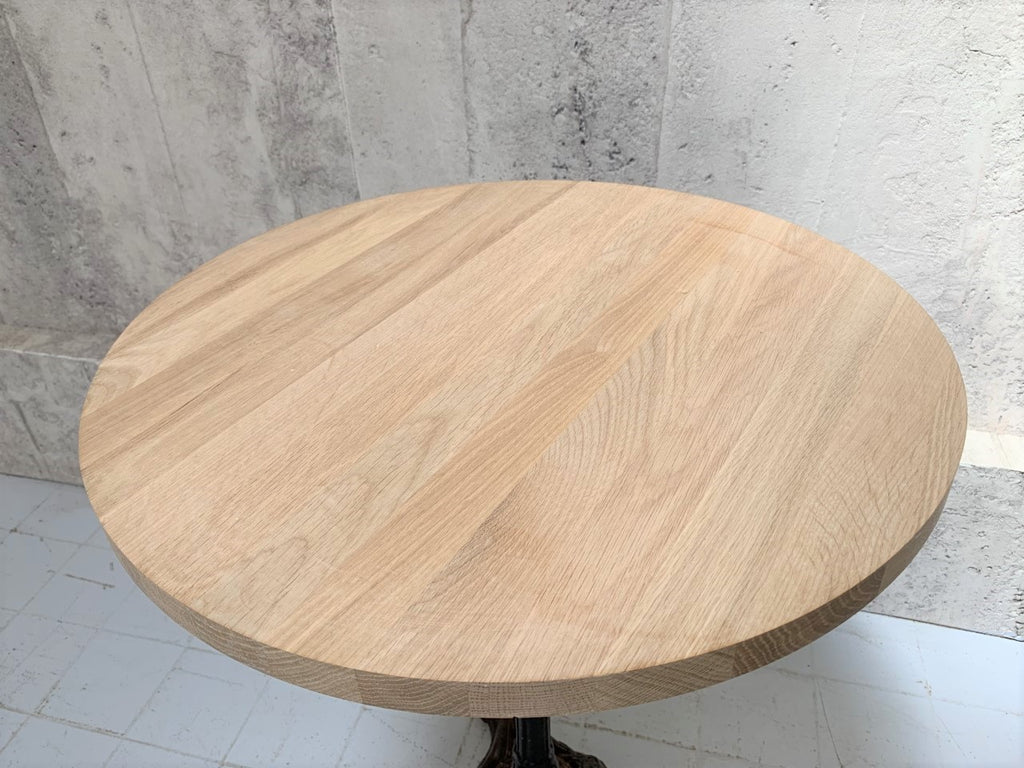 Circular Solid Oak and Black Antique Cast Iron Pedestal Bistro Table