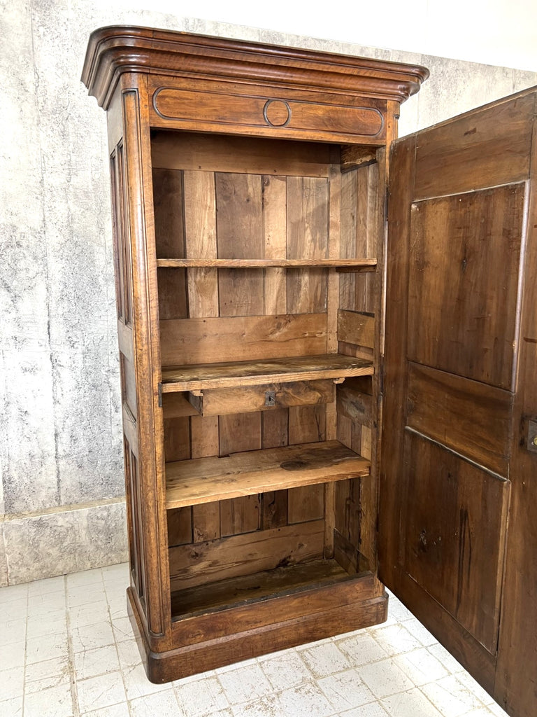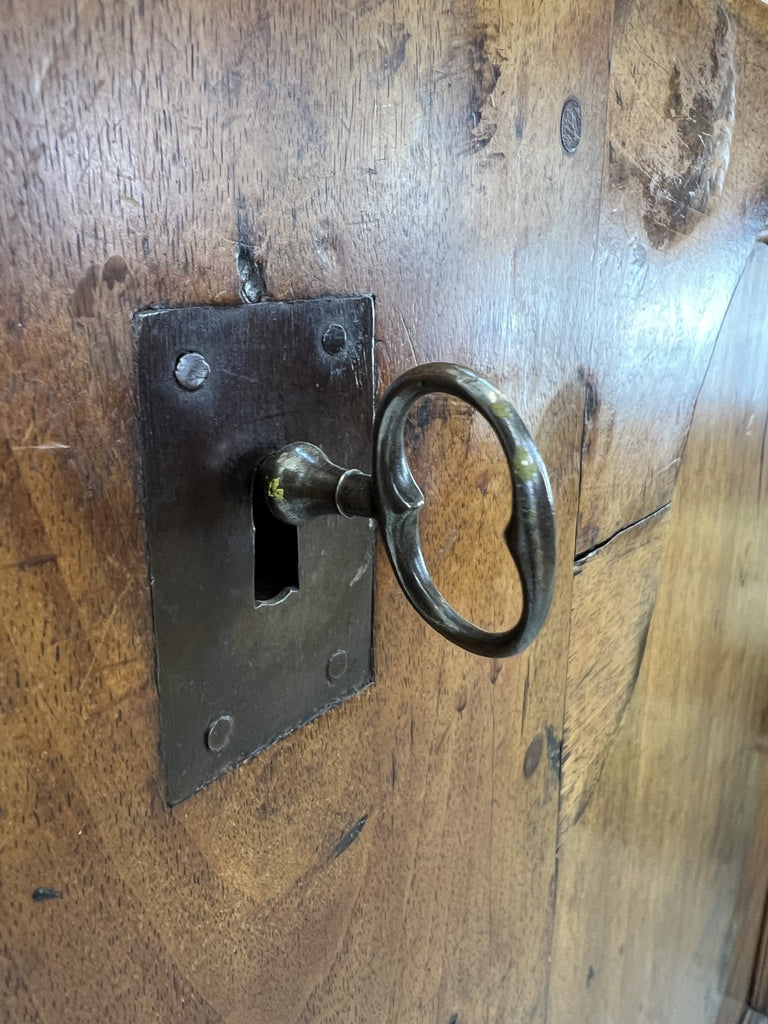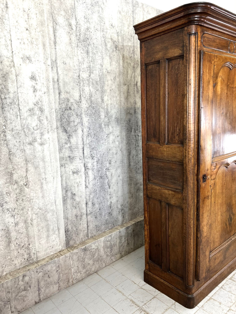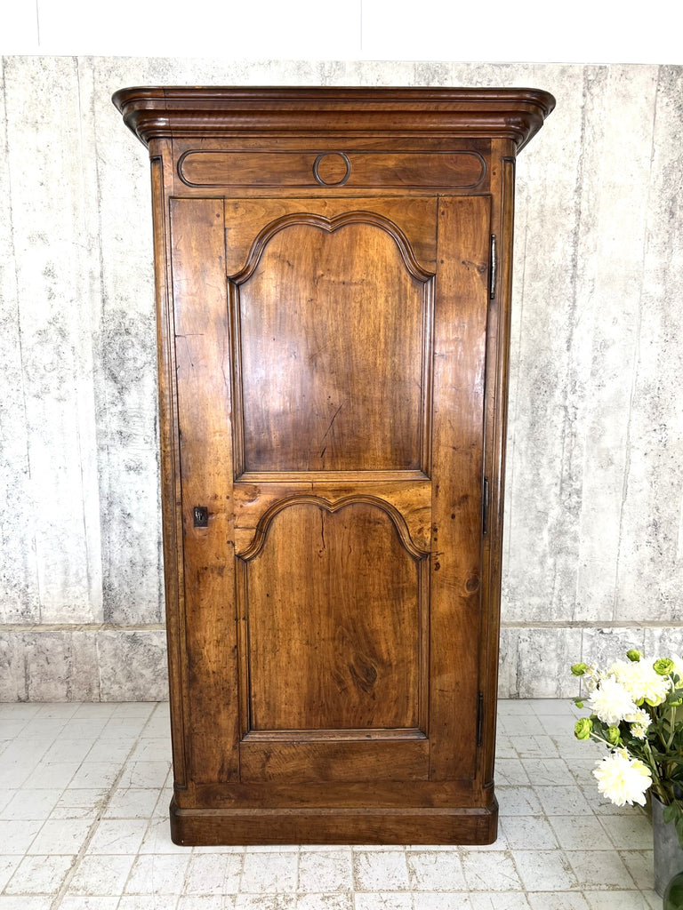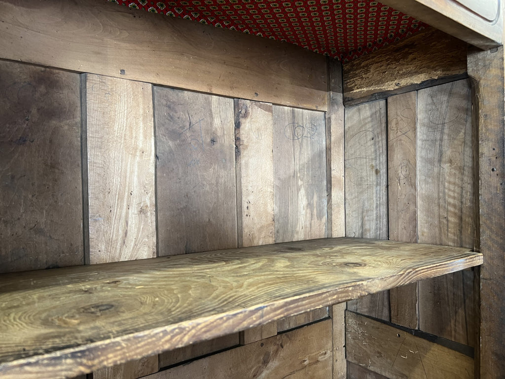 A solid and heavy French cupboard, with the most beautifully mellow solid wood. The doors open to shelves and there is one lockable drawer attached to the underside of one shelf. All with the original drawer furniture and keys. Ancient wood worm, bashes and bruises as you would expect but in good working order. Ready to use as it is for a larder cupboard, hallways storage, bedroom storage or anything you like.... a really fabulous piece.