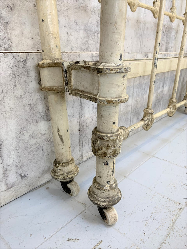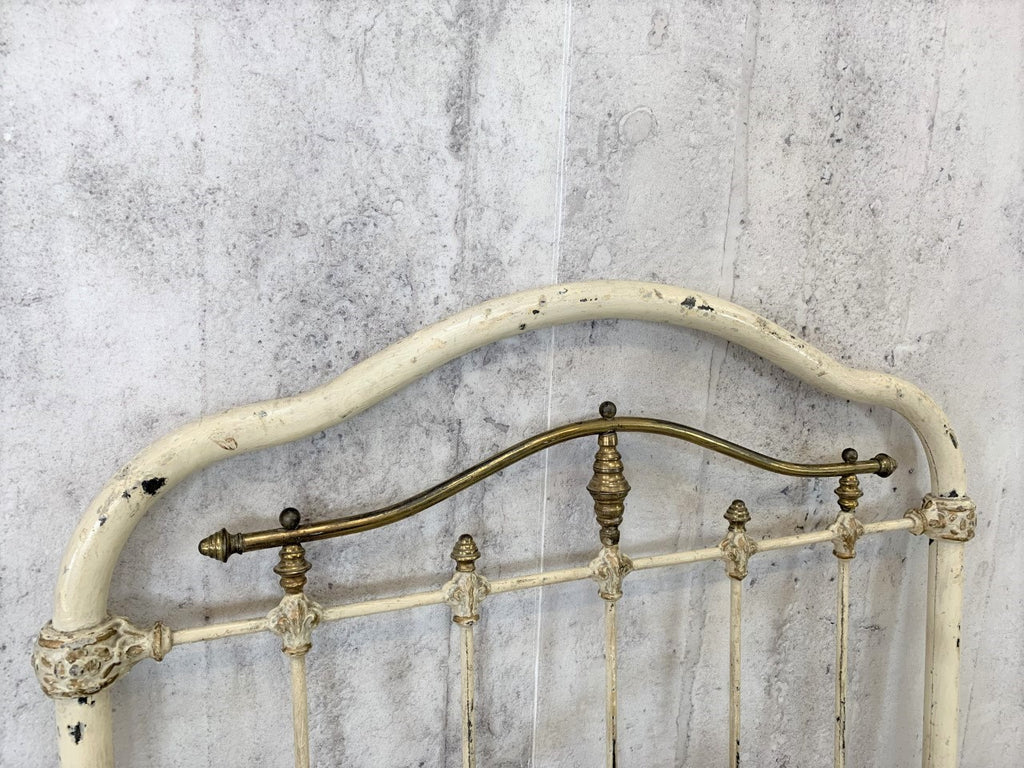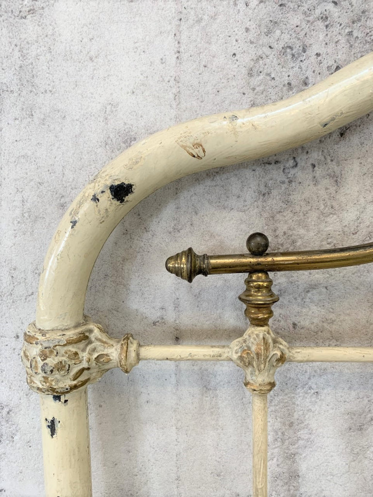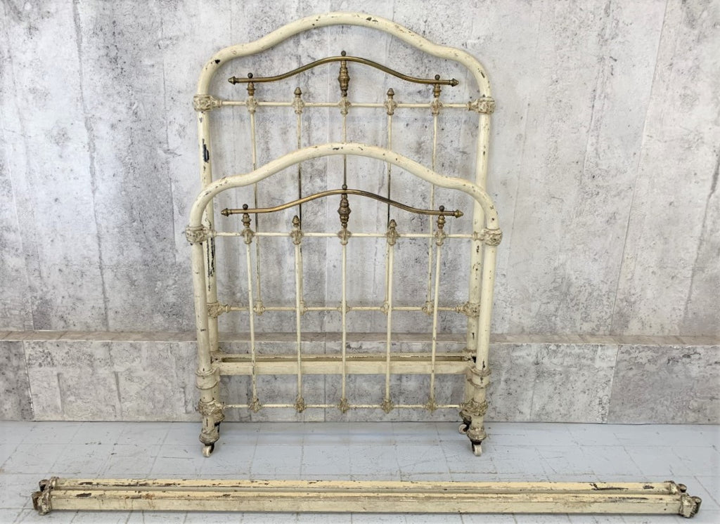 This is a really fabulous bed frame. Really heavy and makes modern bed frames look very poorly constructed. Brass and Metal throughout, this bed is easy to assemble with jigsaw style fixings. This is the bed frame only. The piece has layered paint and we have given it a good clean but you may way to repaint over, or leave it as it is. 4 pieces.