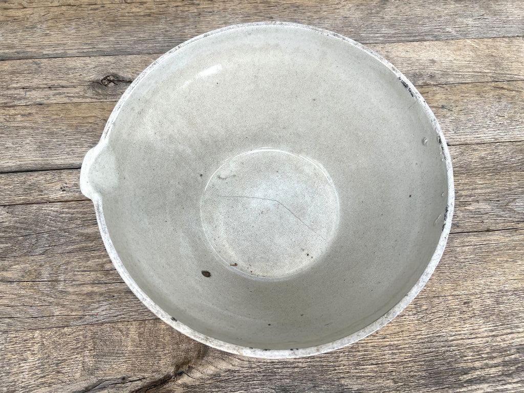 A fabulous individual Dairy bowl in an unusual light grey colour. In good useable condition with marks of use and age. A wonderful bowl to use in your home or as decoration.