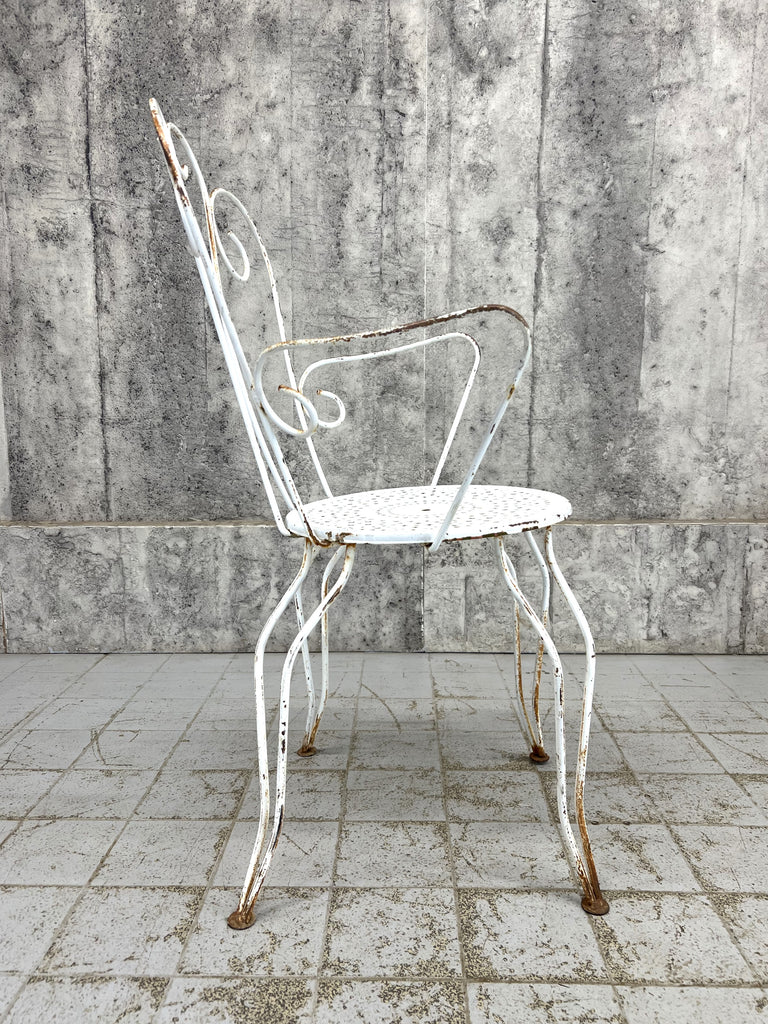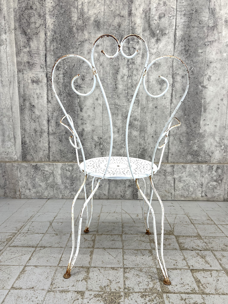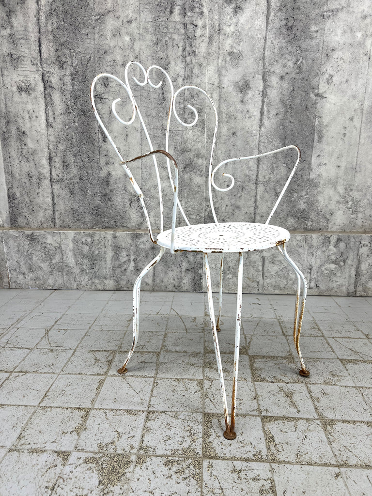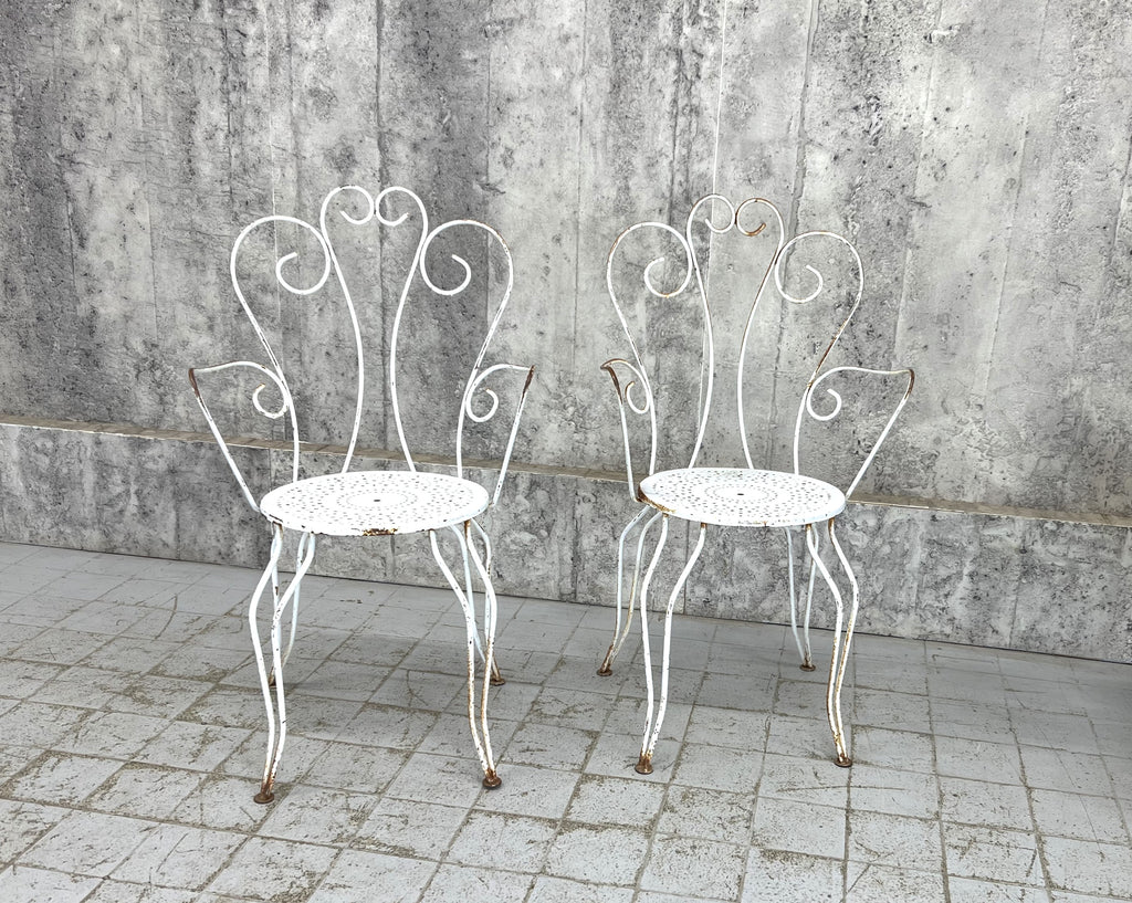 A pretty set of two carvers that has the original white paint, rust patches that are visible. The rust has not worn through at all so these are structurally sound. A classic style, matching pair.