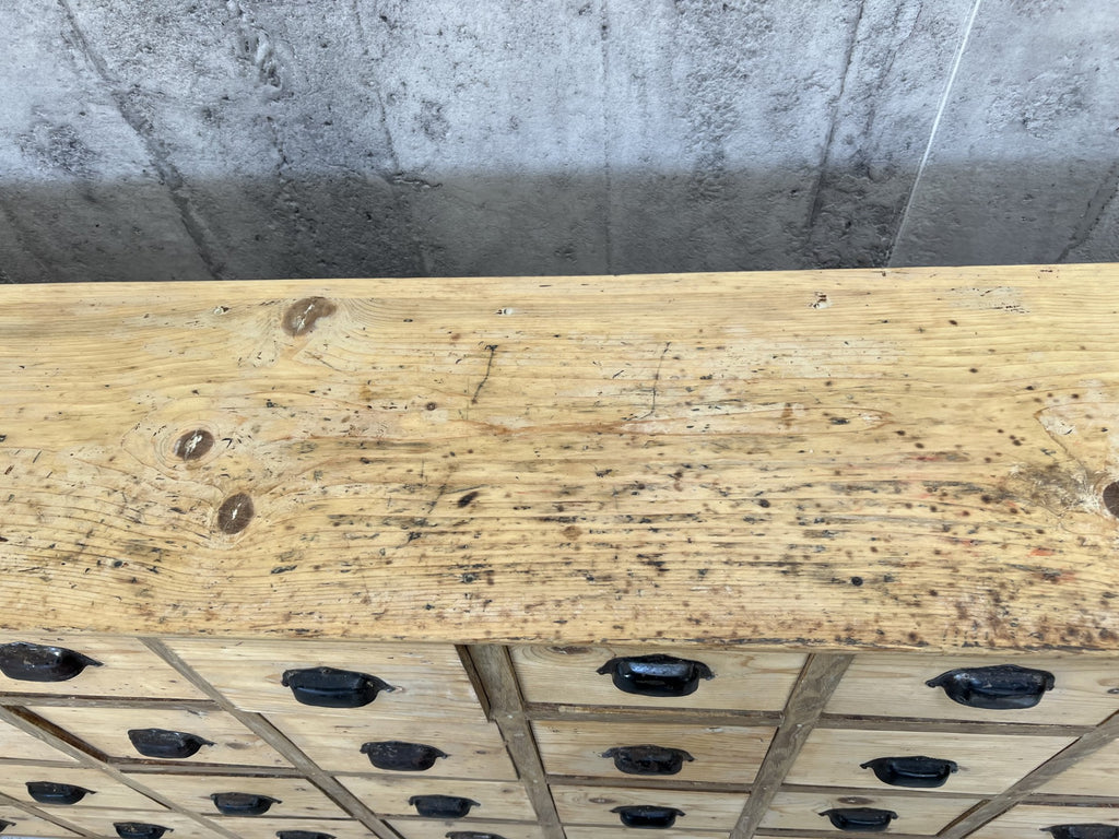 The drawers have the original cup handles and there is wear and tear as you would expect commensurate with age and use. What I love about these pieces is not only do they have visual impact but they also store so much in a small footprint. The drawers are a really useful size to store kitchen items, shoes, clothing, product in a shop, materials in a workshop. The list is endless.