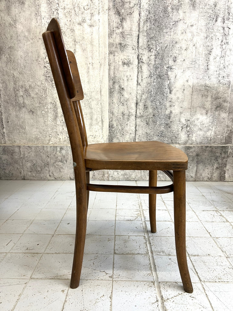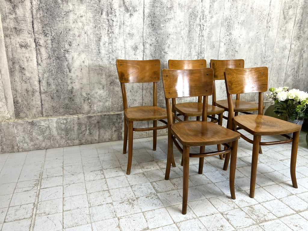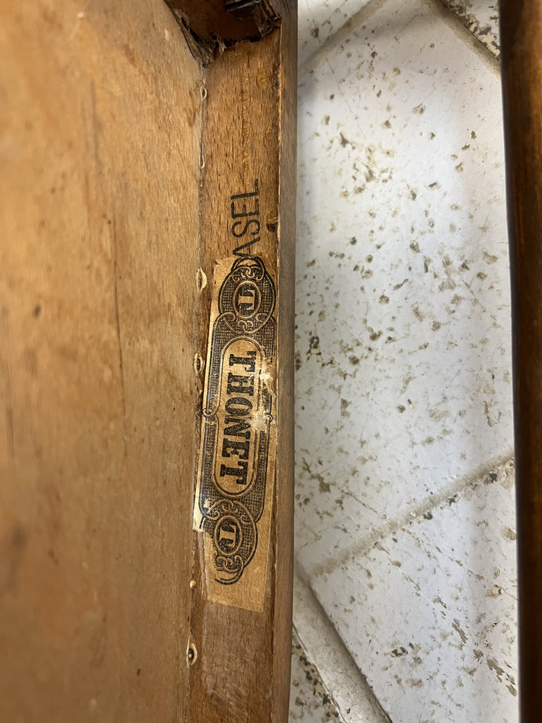 A sturdy set of bistro chairs, with a Thonet makers mark, but something more hidden underneath. A comfortable set in good condition, ready to use in a residential or commercial premises.